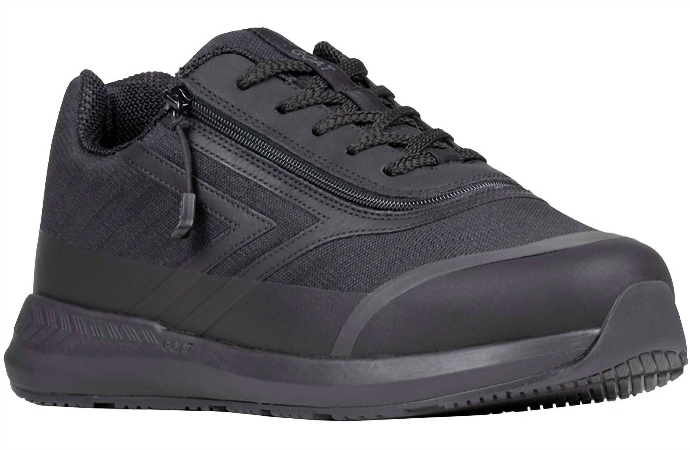 Discover the Billy Footwear Men's Goat Afo-friendly Sneakers, a stylish choice for comfort and practicality in classic black. Made with durable thick knit polyester fabric, these sneakers feature a flat heel and a round toe design for everyday wear. The short wrap zipper closure and functional laces provide ease of use and a customizable fit, while the double-layer toe cap ensures enhanced durability. The shoes are equipped with two removable 3mm insoles and a wedge insert for adjustable depth, perfect for custom orthotics.