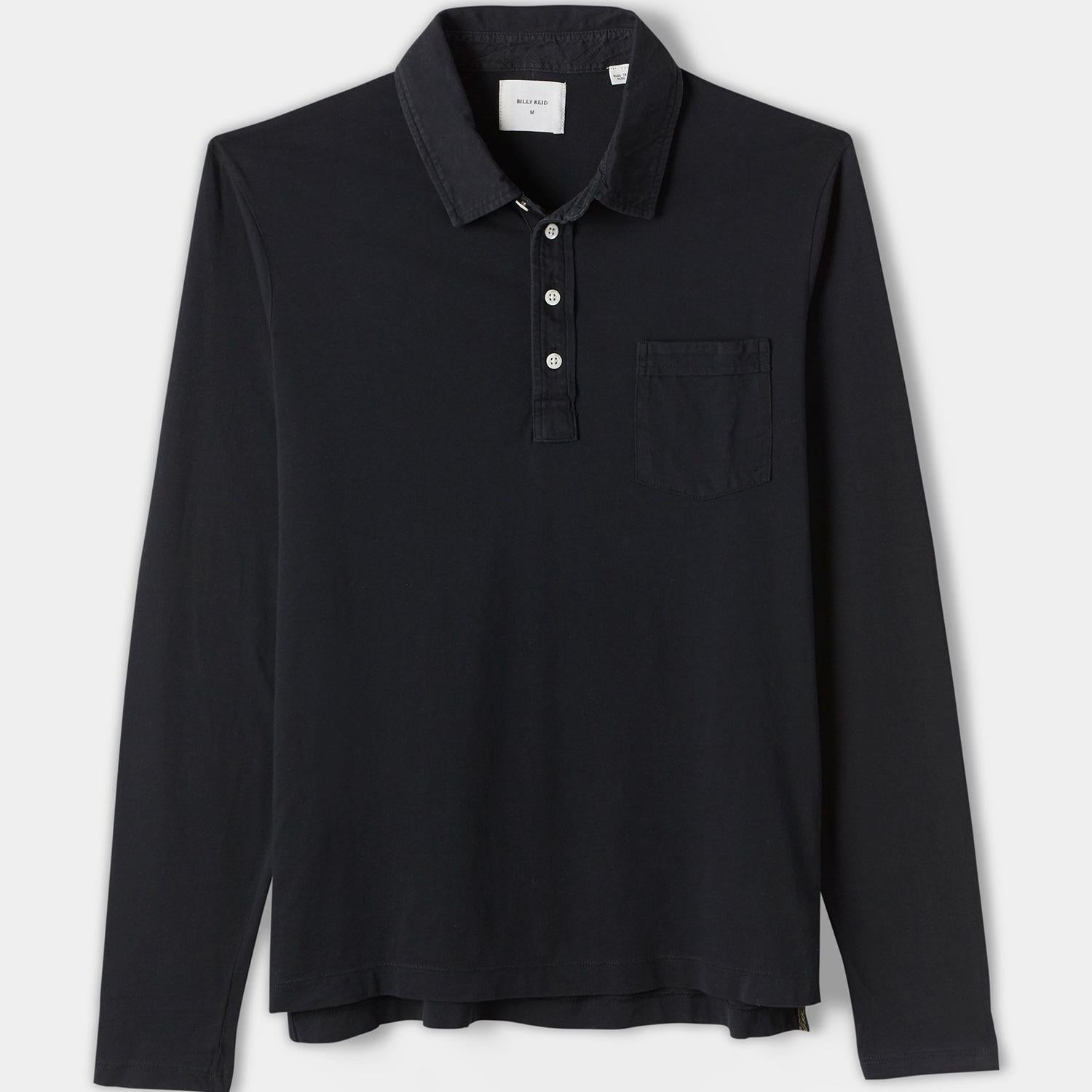 The long-sleeve version of our beloved short-sleeve Pensacola Polo – a mainstay in our collection and our customers' wardrobes for over two decades. It's cut in ultra-soft organic Pima cotton and garment-dyed for a lived-in look and feel. It's chock full of thoughtful Billy Reid design details like a woven undercollar, twill tape under the placket, signature heirloom ribbon stripe detailing inside the vents, and stitch detailing at the patch pocket reminiscent of our signature heirloom ribbon stripe. It's offered in various colors and remains a year-round foundational piece in the collection. Fitted through the chest, body, and sleeves. Model is 6'2" wearing size medium.