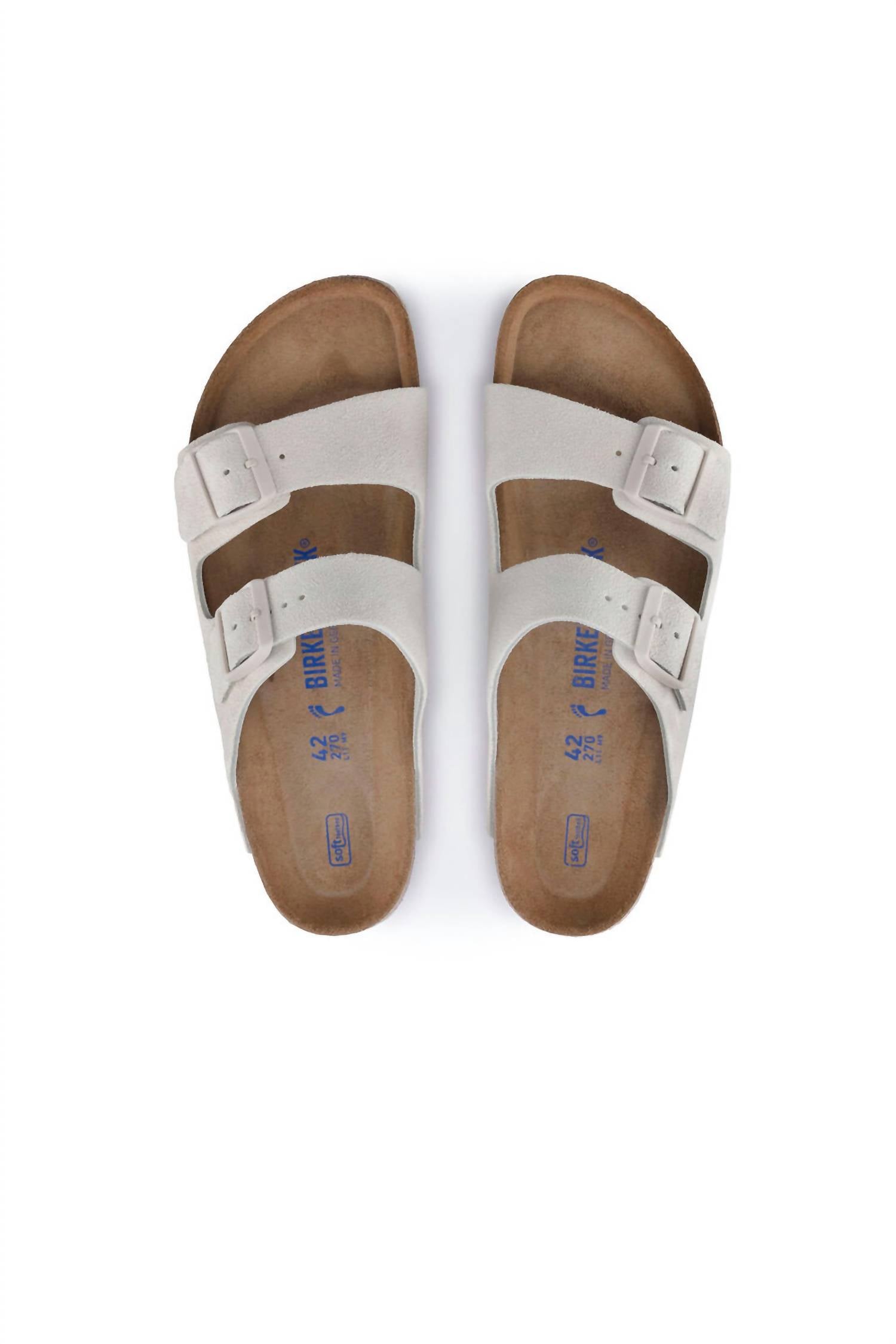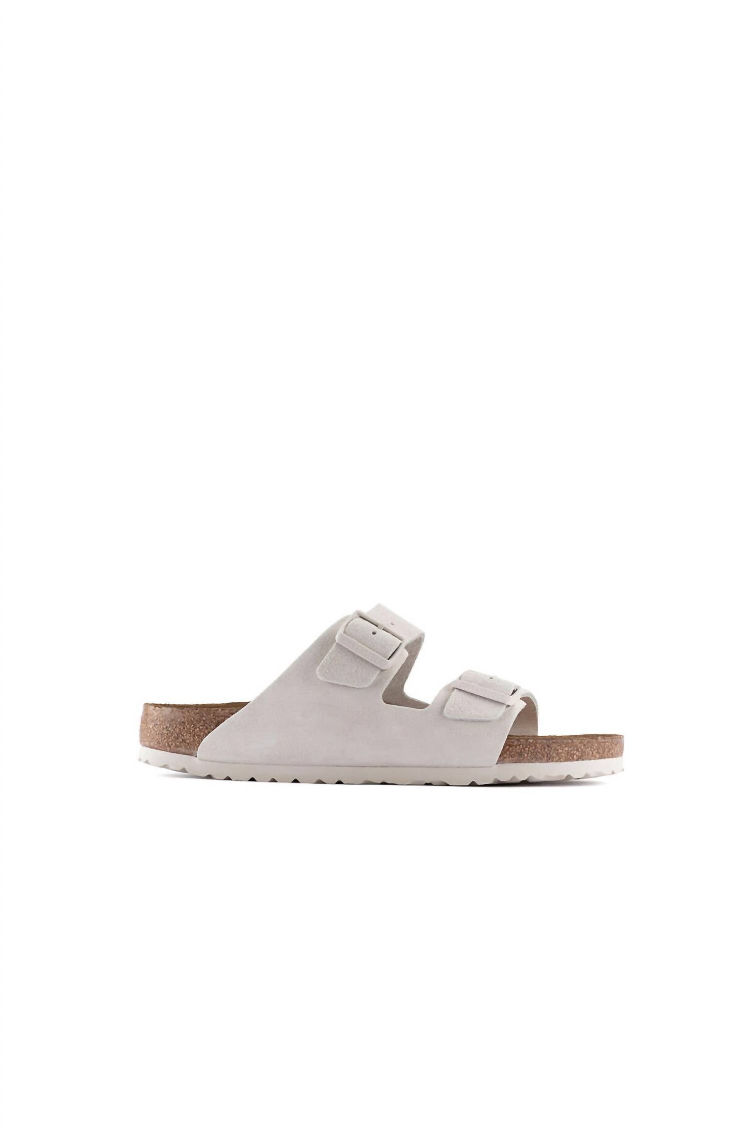 This iconic two-strap sandal combines classic style with a comfortable contoured footbed. Matte, tonal buckles with a subtle textile texture enhance the look, while the soft footbed with an added foam layer provides all-day comfort. The upper is made from soft suede for a flexible, gentle fit.