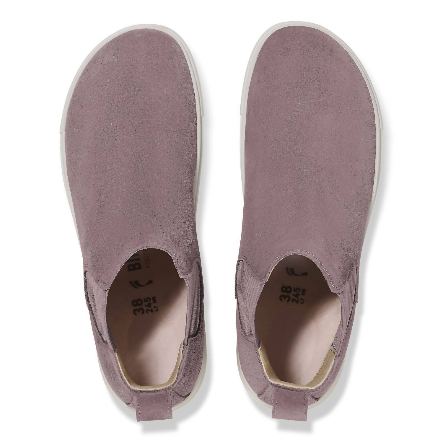 Say hello to the perfect, most versatile boot. The ankle height makes this style easily transition from day to night. Wear them with your favorite skinny jeans and tee for a more laid back look, or pair them with your favorite mini dress and jacket for a night out on the town. Step into comfort and style with the Women's Bend Chelsea Suede Leather Boots by BIRKENSTOCK. Crafted with a classic suede upper and suede footbed lining, these boots ensure lasting comfort and a snug fit. The contoured cork-latex footbed, made in Germany, provides exceptional support. Designed for ease, they feature a pull-on heel tab and stretch side gusset, complemented by a natural rubber sole. Material: Suede. Country of Origin: Germany. Ideal for everyday wear, these boots come in a chic Faded Purple shade and offer a narrow fit with a round toe shape.