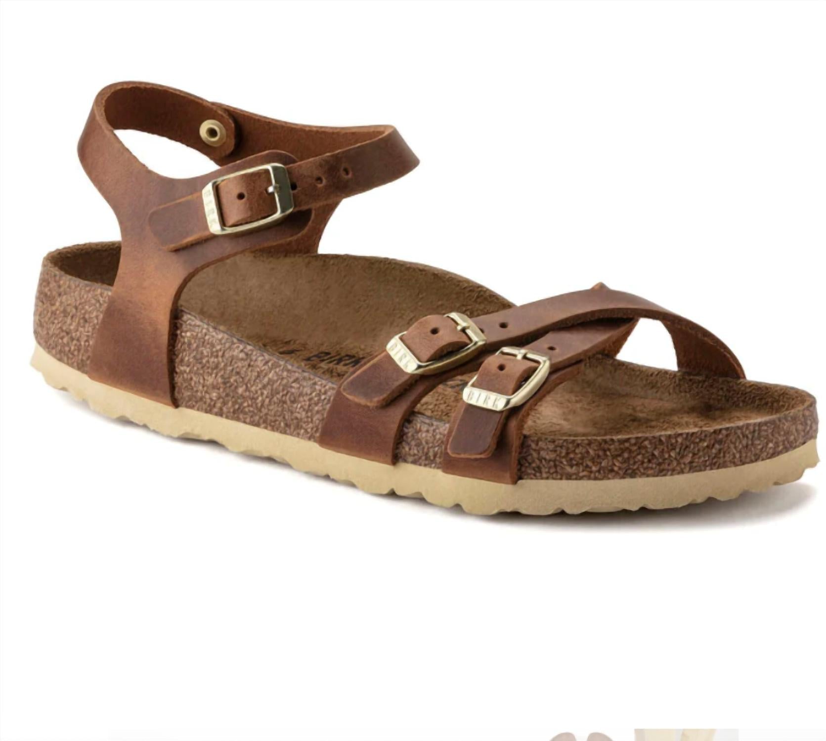 Elevate your footwear collection with the Women's Kumba Sandal by BIRKENSTOCK, presented in a rich cognac tone. Crafted from premium leather, these sandals offer enduring comfort and timeless appeal. Featuring an open toe design, they are perfect for warm-weather outings. Embrace this stylish addition, expertly designed for adult women seeking both fashion and function.