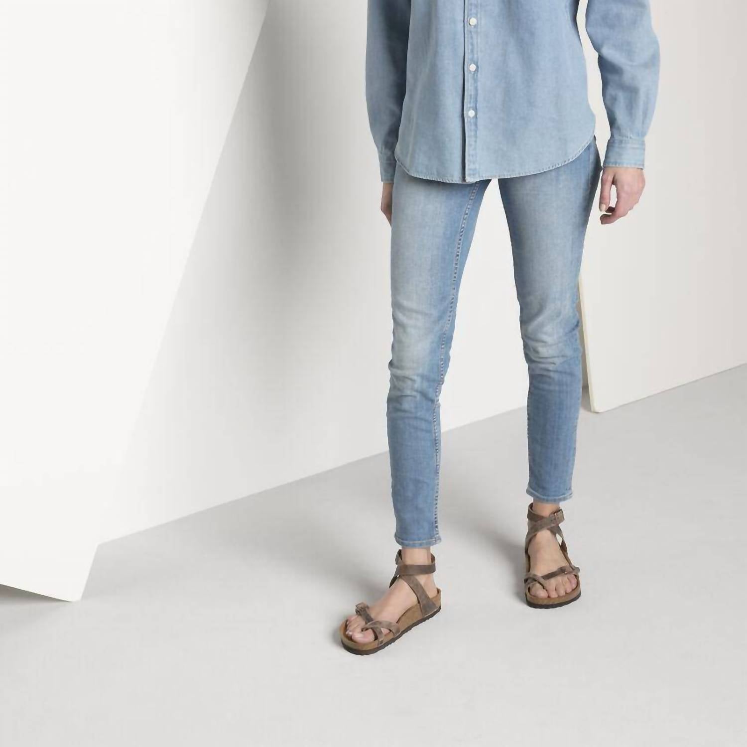 Classicly cute and all-day-wearable. We love this sandal. Step up your summer style with the Women's Yara Tobacco Ankle Strap sandals by BIRKENSTOCK. Expertly crafted from premium leather, these sandals feature a leather-lined contoured footbed that molds to your foot for superior support. Designed with a minimalist open toe and flat heel, they're perfect for vacations and enhancing your warm-weather look. Embrace the season with a touch of sophistication in this tobacco-hued pair made for comfort.