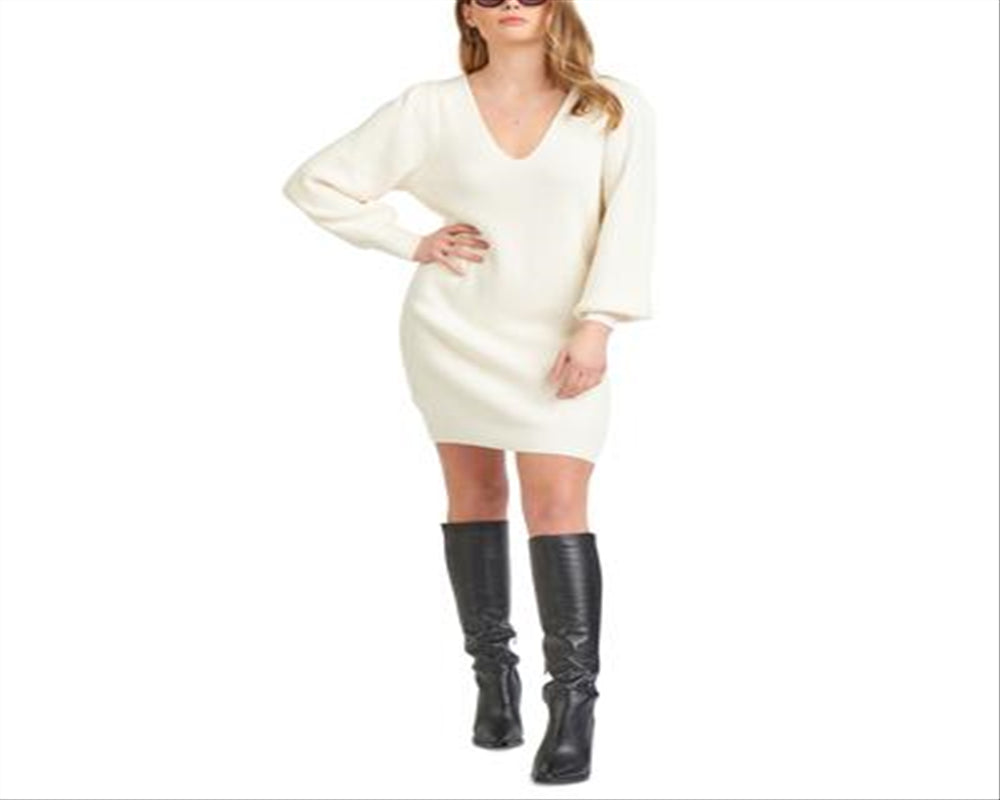 Black Tape Women's V Neck Sweater Dress White Size Small