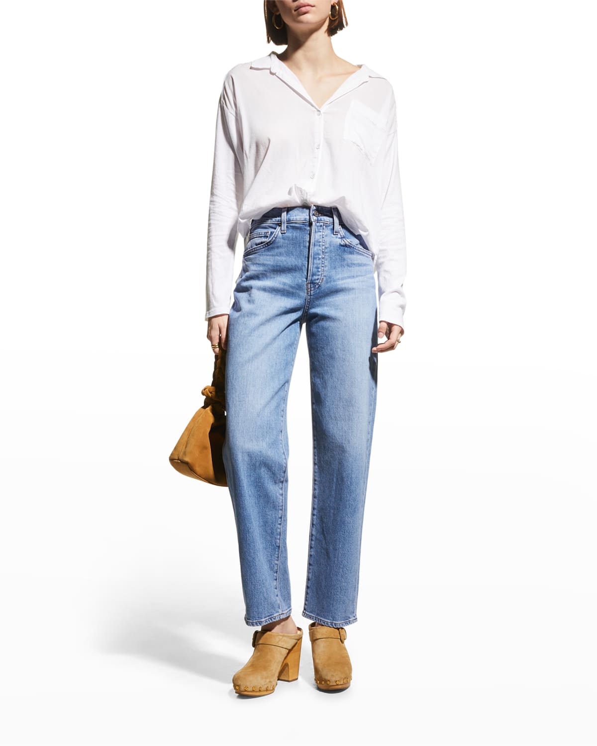 Veronica Beard Jeans Blake classic straight jeans in stretch denim Approx| 29 inseam High rise Button/zip fly; belt loops Five-pocket style Straight legs Full length Cotton/polyurethane Machine wash cold| inside out Made in USA