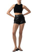 Elevate your style with the Studded Leather Shorts by BLANKNYC, combining classic black with edgy silver stud detailing for a modern aesthetic. These mid-rise shorts feature a regular fit and a zip closure for easy wear, with silver studs accentuating the beltline and leg hems. Crafted from 55% Polyurethane and 45% Polyester, they’re solidly designed for a chic, standout look. Care: Spot or wipe clean to maintain their sleek appearance, perfect for pairing with heels or boots.