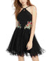 Blondie Women's Embroidered Zippered Floral Sleeveless Halter Short Fit Flare Party Dress Black Size 1