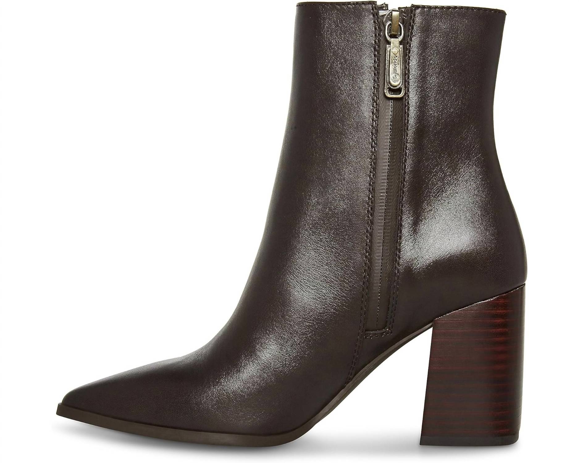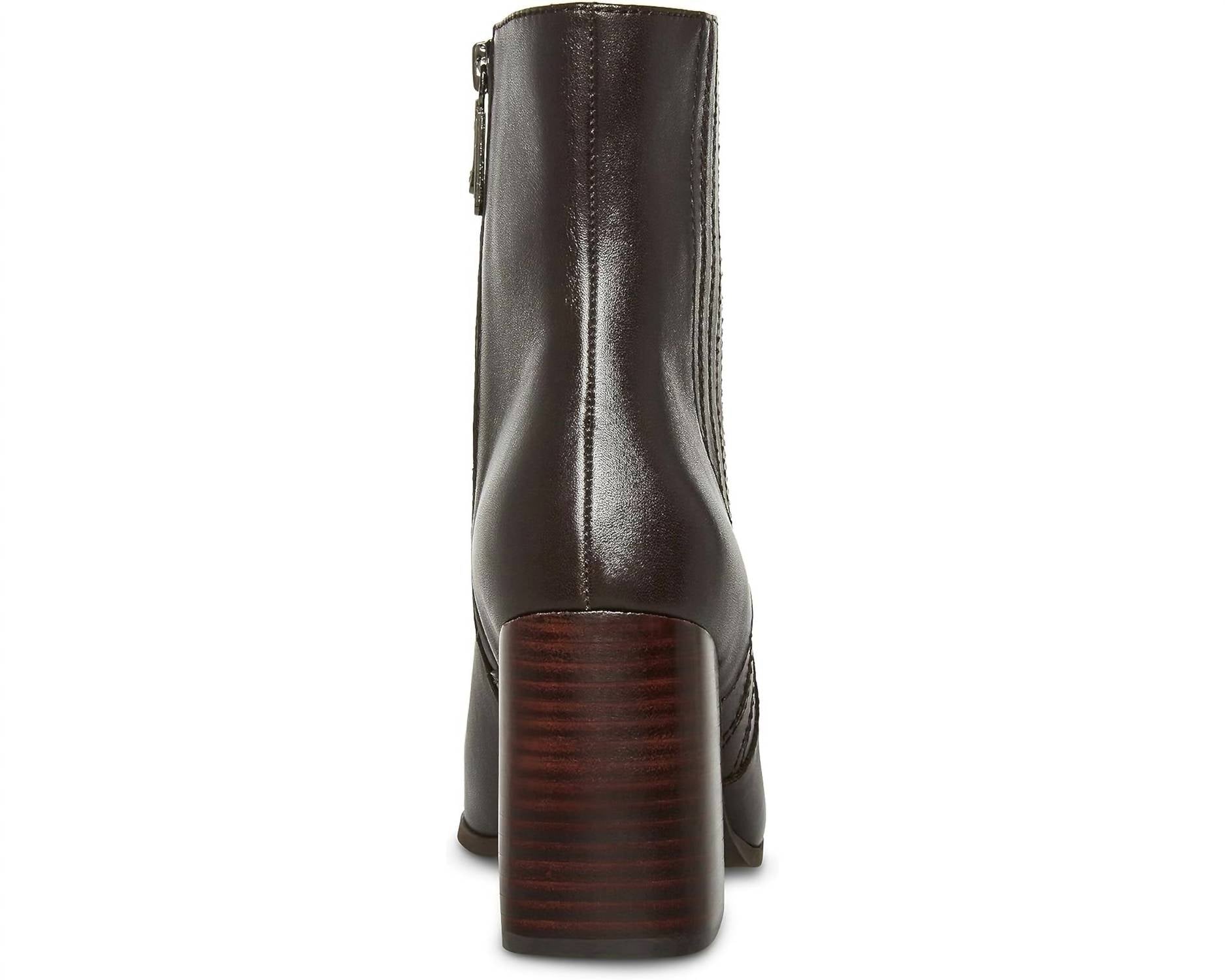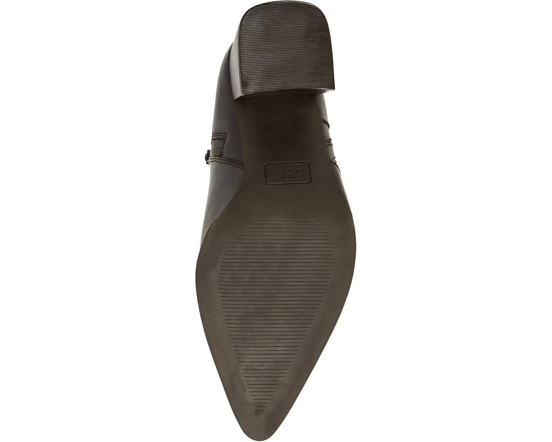 Upgrade your shoe game with these classic heeled boots, designed to merge sophistication and style. Comfortable enough for long days or a night out on the town. Expertly fusing classic elegance with modern allure. Mid-heeled boots are crafted from sleek leather. Feature a synthetic lining and cushioned PU footbed for exceptional comfort. Offering practical style, come with a side zippered closure and a pointy toe. Sculptural 3-inch block heel. Boast a rubber outsole, a 9-inch circumference, and a 5.5-inch shaft measurement.
