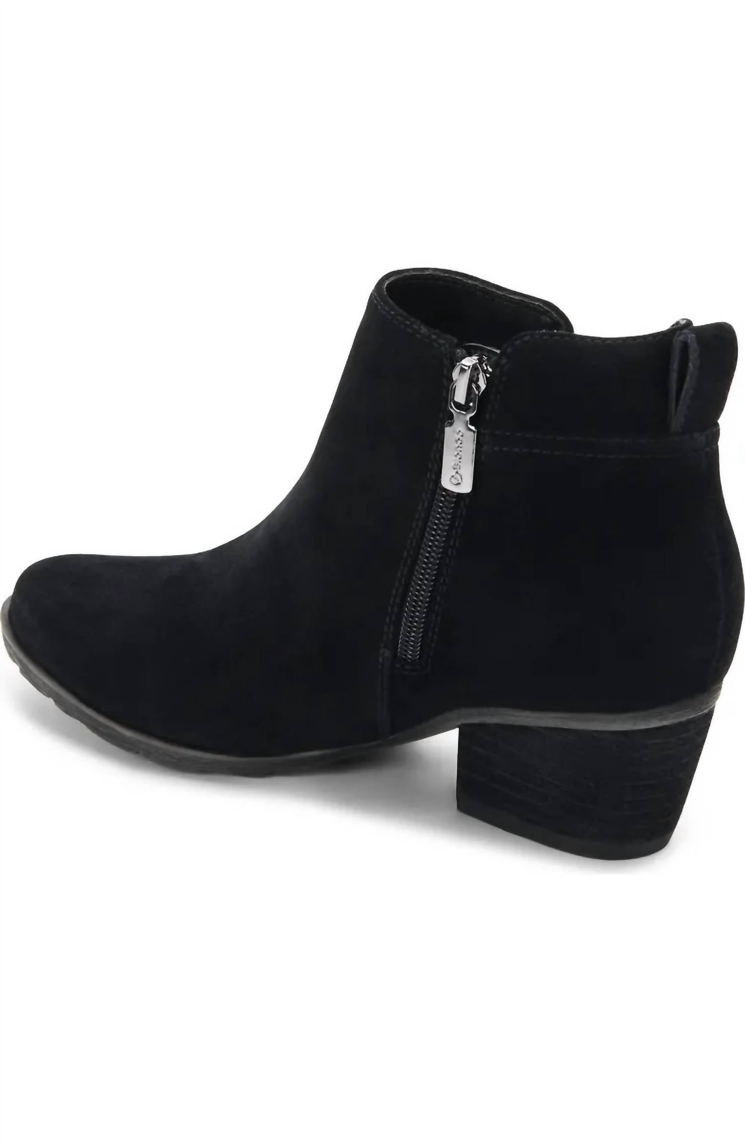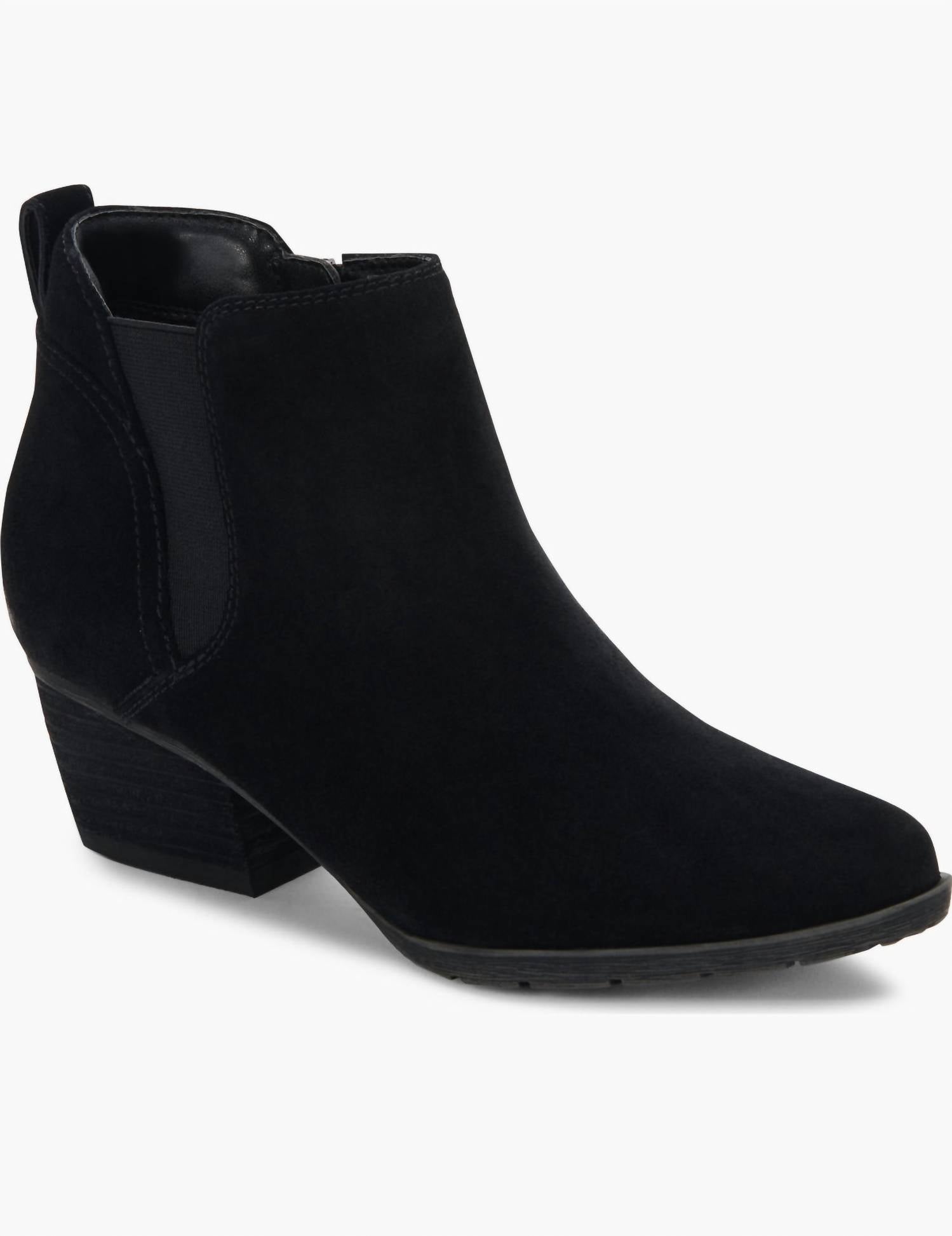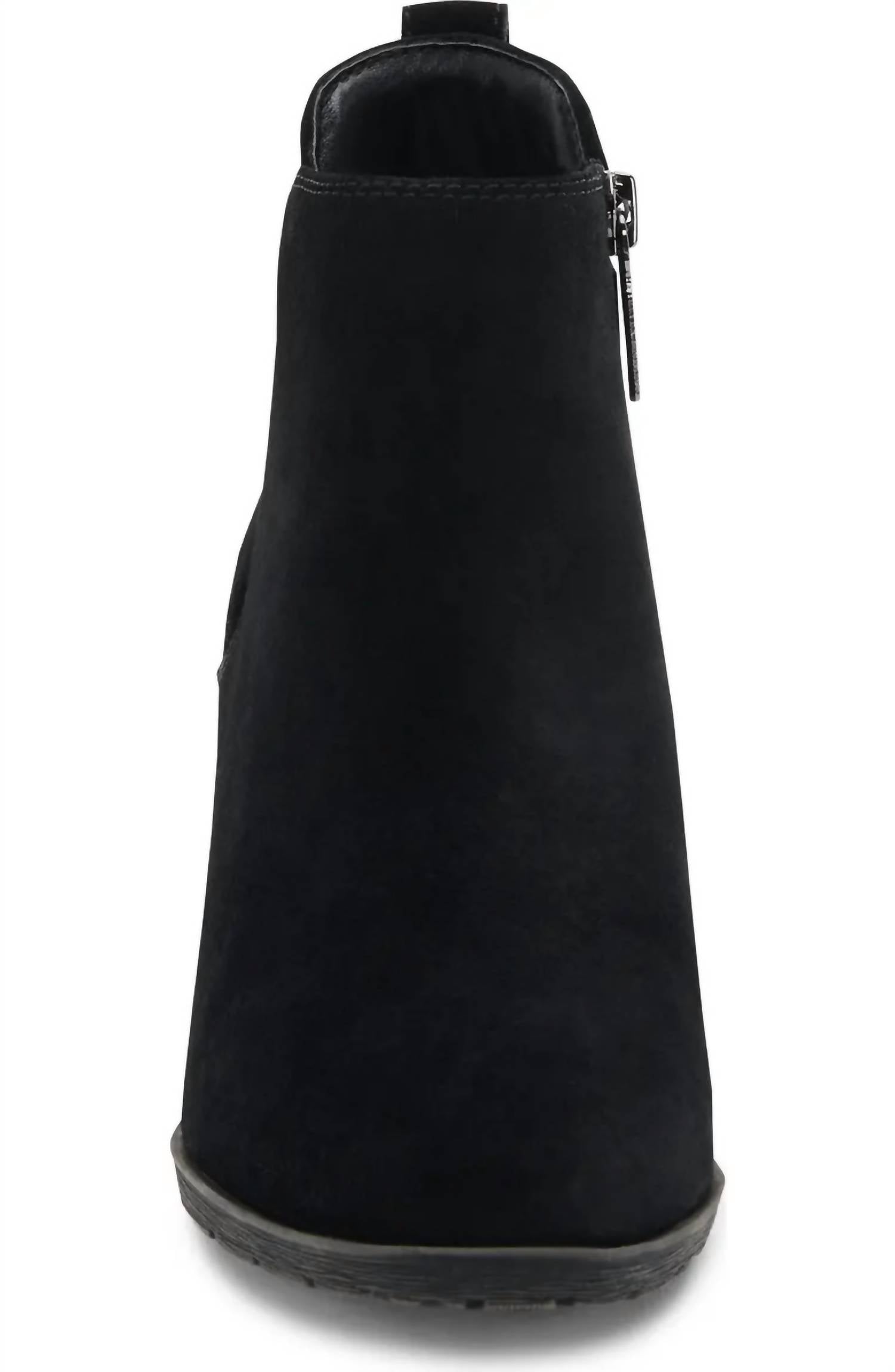 Upgrade your shoe game with these classic heeled boots, designed to merge sophistication and style. Comfortable enough for long days or a night out on the town. Discover the Women's Verena Waterproof Suede Boots by Blondo, a stylish yet durable choice for any wardrobe. Featuring a low 2" block heel and a waterproof finish, these black heeled boots boast a 4" shaft height and a convenient side zip closure for easy wear. They are crafted with a leather upper, textile lining, and synthetic sole, ensuring comfort and longevity. Designed with an almond toe shape, these boots are suitable for adult women.