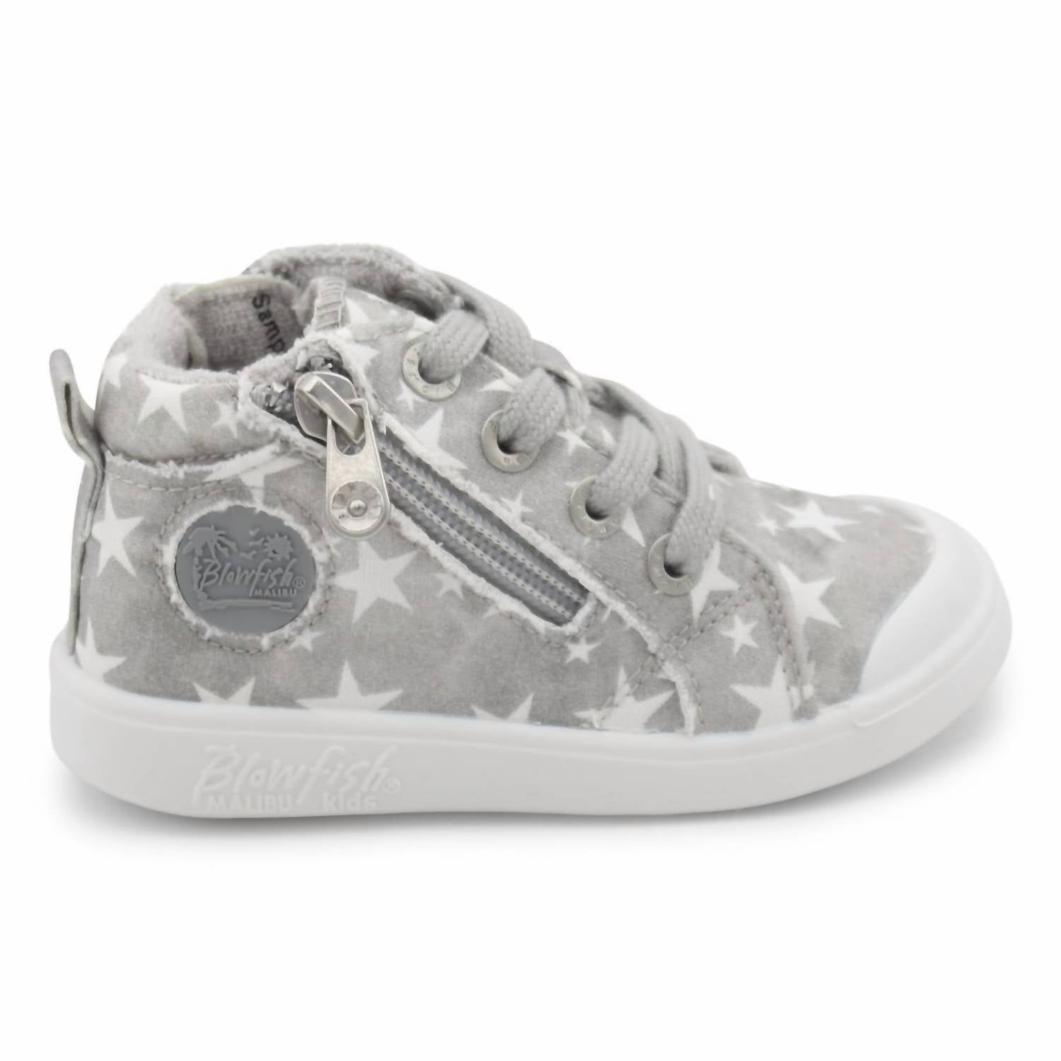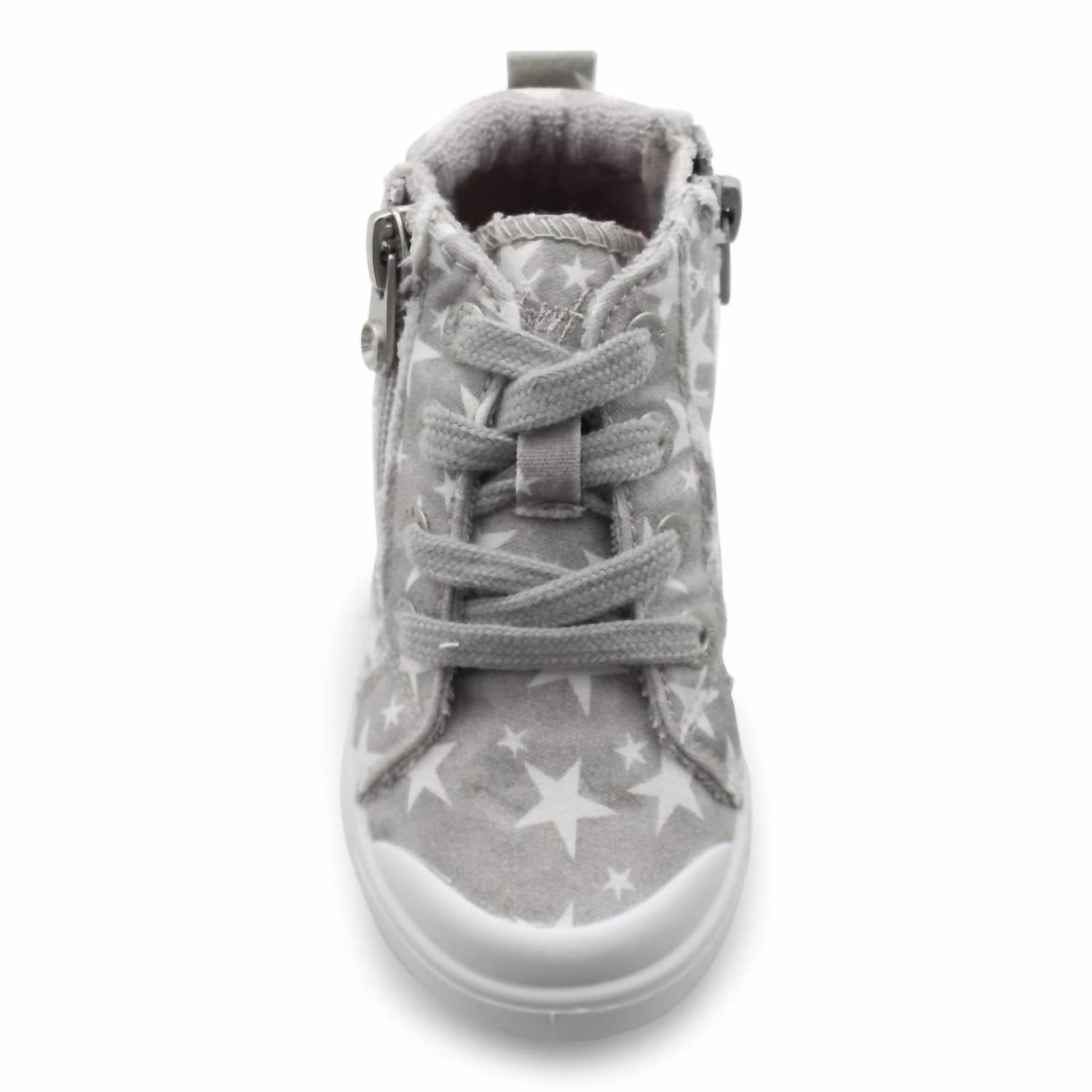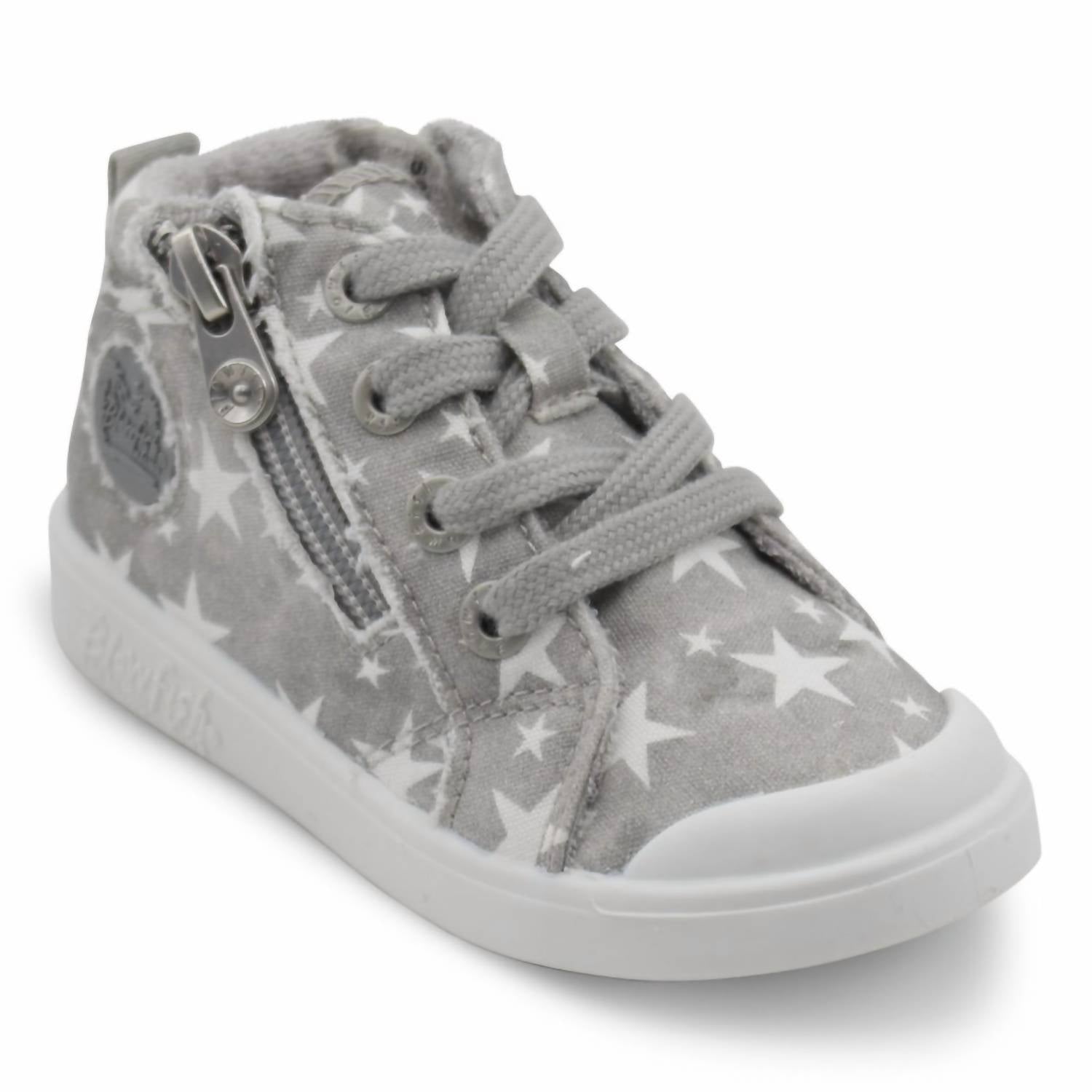 Introduce your toddler to comfort and style with the Valetta High Top Shoes by BLOWFISH. These sneakers feature a lace-up, high-top design in gray wonder star with a pre-distressed upper and top-stitching for a trendy look. Enhanced with functional laces and a convenient side zipper, they promise easy wearability. The shoes come with a cozy terry cloth lining and an ultra-comfortable super foam insole, set on a flat heel under 1" for optimal support. Toe Shape: Round. Width: Medium. Ideal for toddlers.