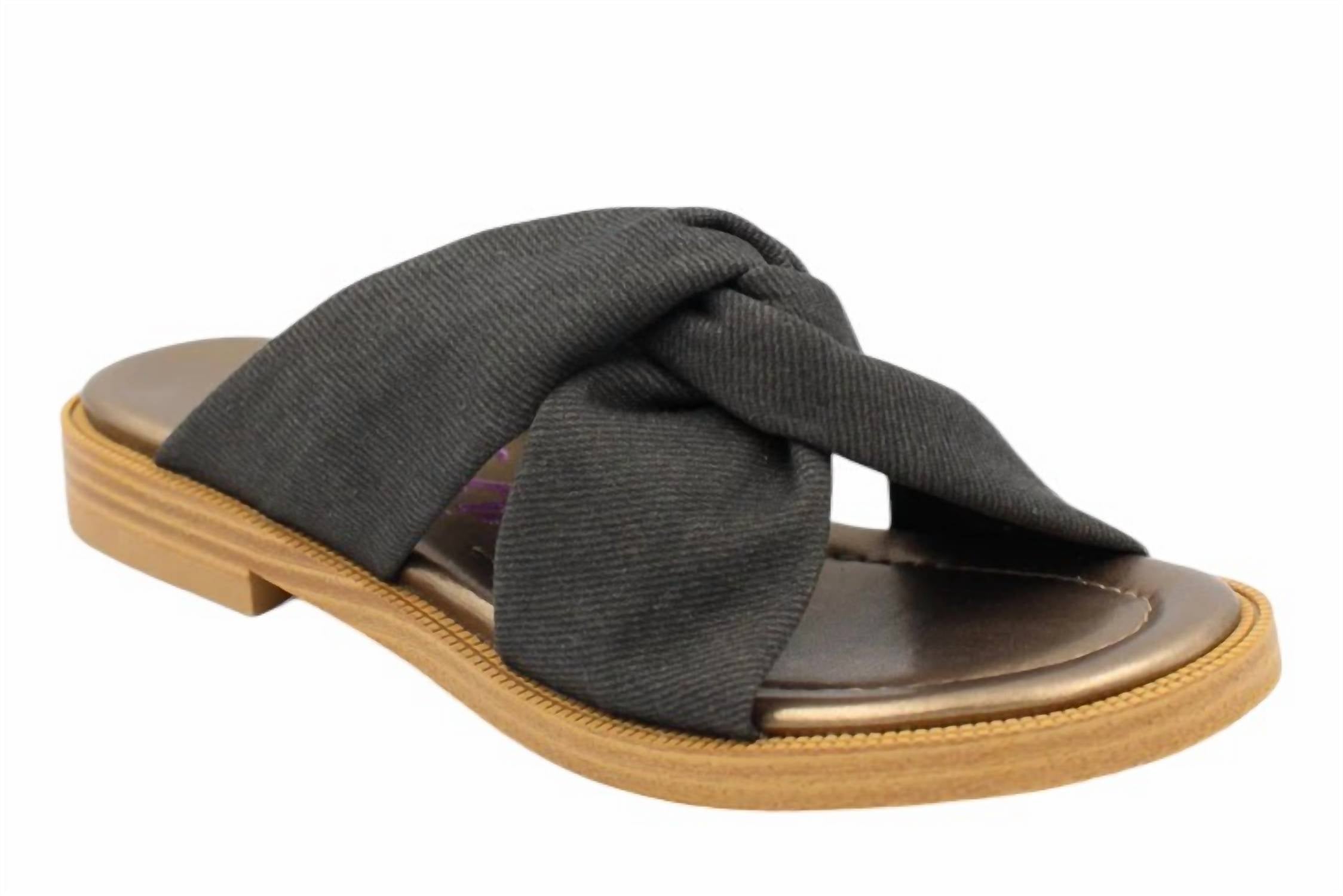 This sandal will take you from brunch to dinner and everything in between. These flat sandals feature a denim fabric upper and lining, an open toe design, and a slip-on style. With a rubber outsole. Imported.