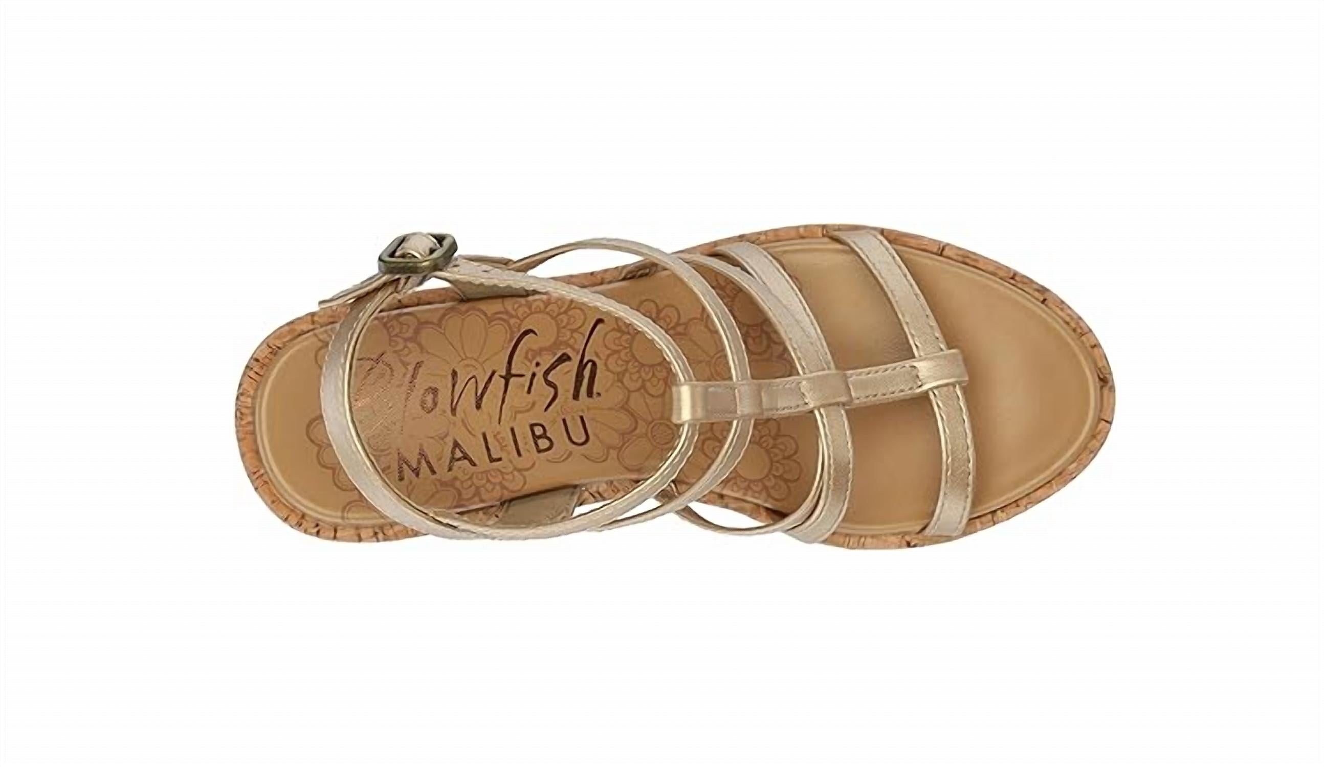 Elevate your footwear game with these adorable wedges. These sandals feature a 4" wedge heel, with an adjustable buckle for easy on and off. The strappy design is made with a synthetic rubber sole and a polyurethane (PU) outer. Imported.