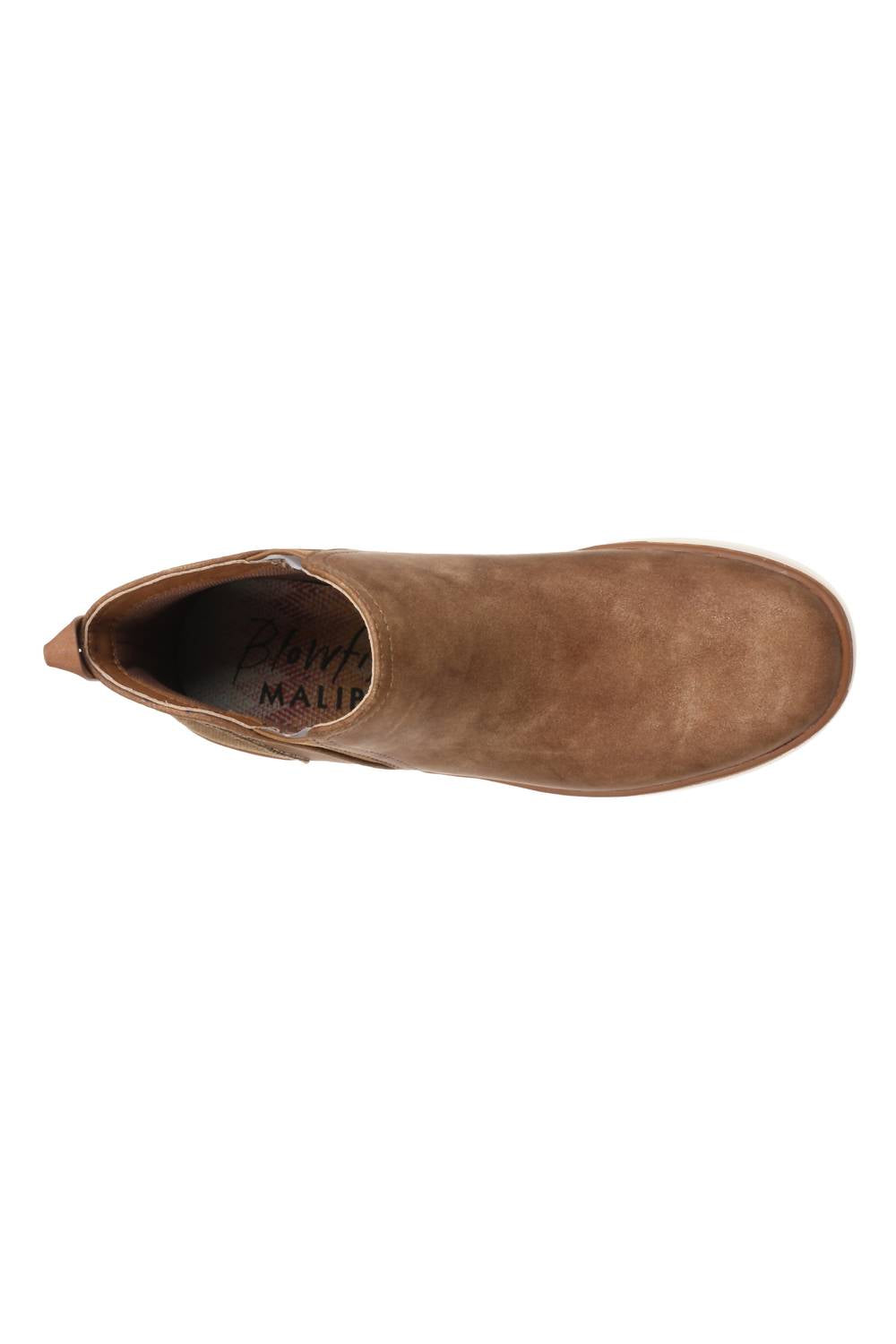 Introducing the Women's Charming Boots by Blowfish, a stylish wedge sneaker crafted for the modern wardrobe. These Whiskey-colored boots feature a faux leather construction with a 2-inch wedge heel for added lift. Designed with elastic goring and a side zipper closure, these shoes ensure easy on and off convenience. Embrace an on-trend silhouette with a round toe shape that complements any ensemble, and enjoy the benefit of a vegan-friendly design.