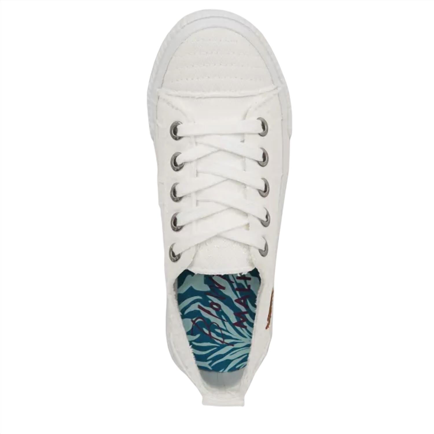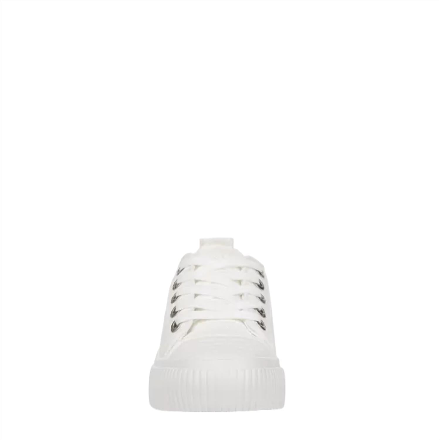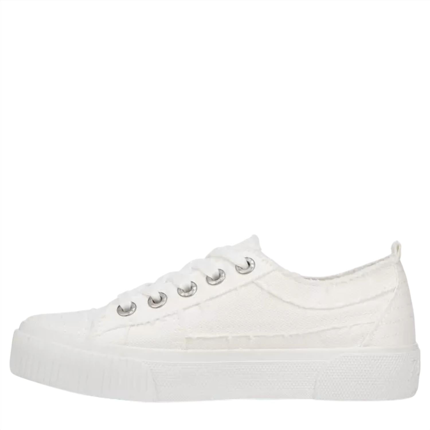 Step into style and comfort with the Women's Clay Sneaker by BLOWFISH. Crafted from 16oz white smoked canvas, these vegan sneakers feature a 1" platform and round toe shape for a modern touch. The functional lace-up design is complemented by branded eyelets and an insole made using environmentally-friendly BLOOM Foam, ensuring a cushioned and supportive fit. Perfectly balancing form and function, these sneakers are an ideal choice for the conscious and fashionable dresser.