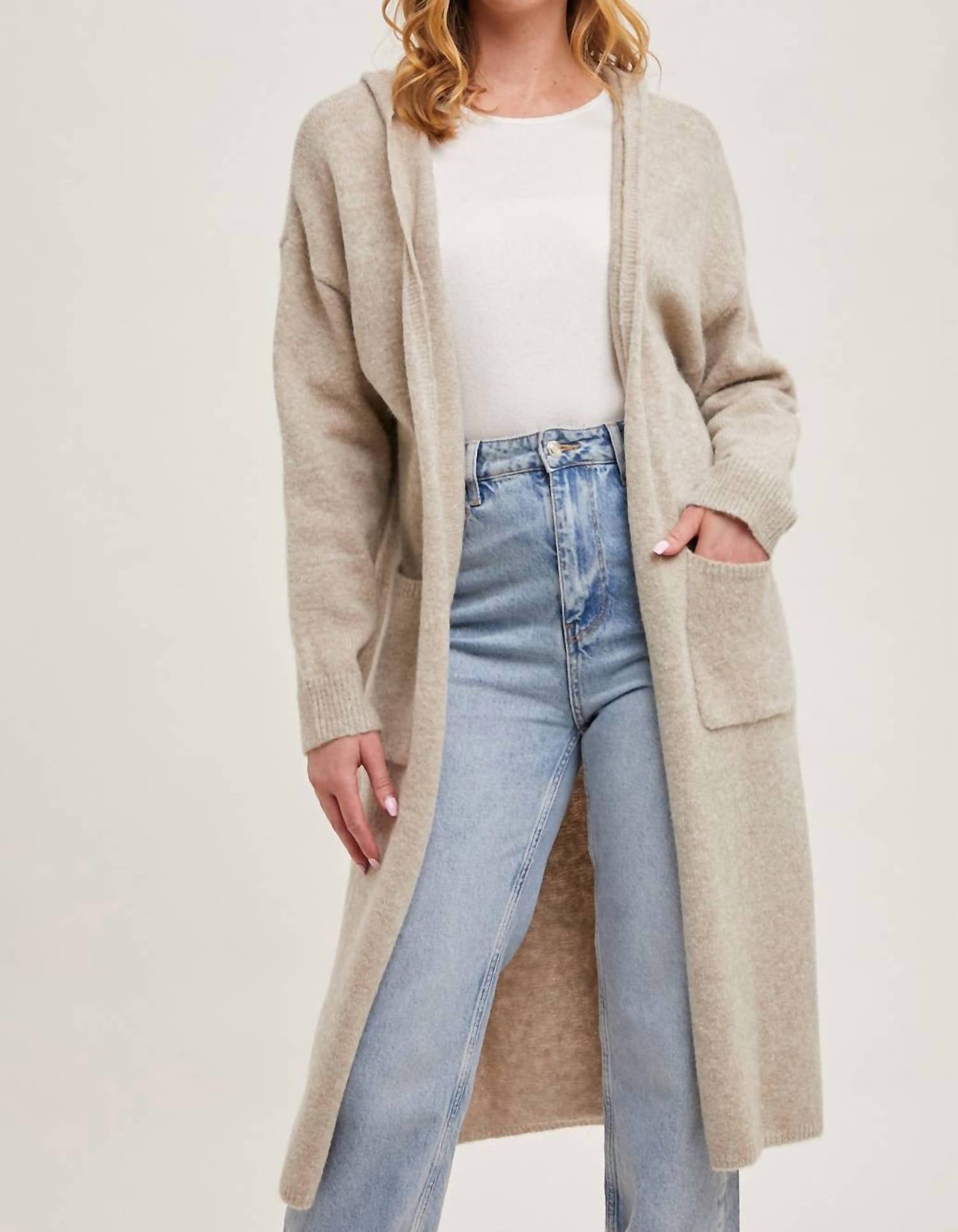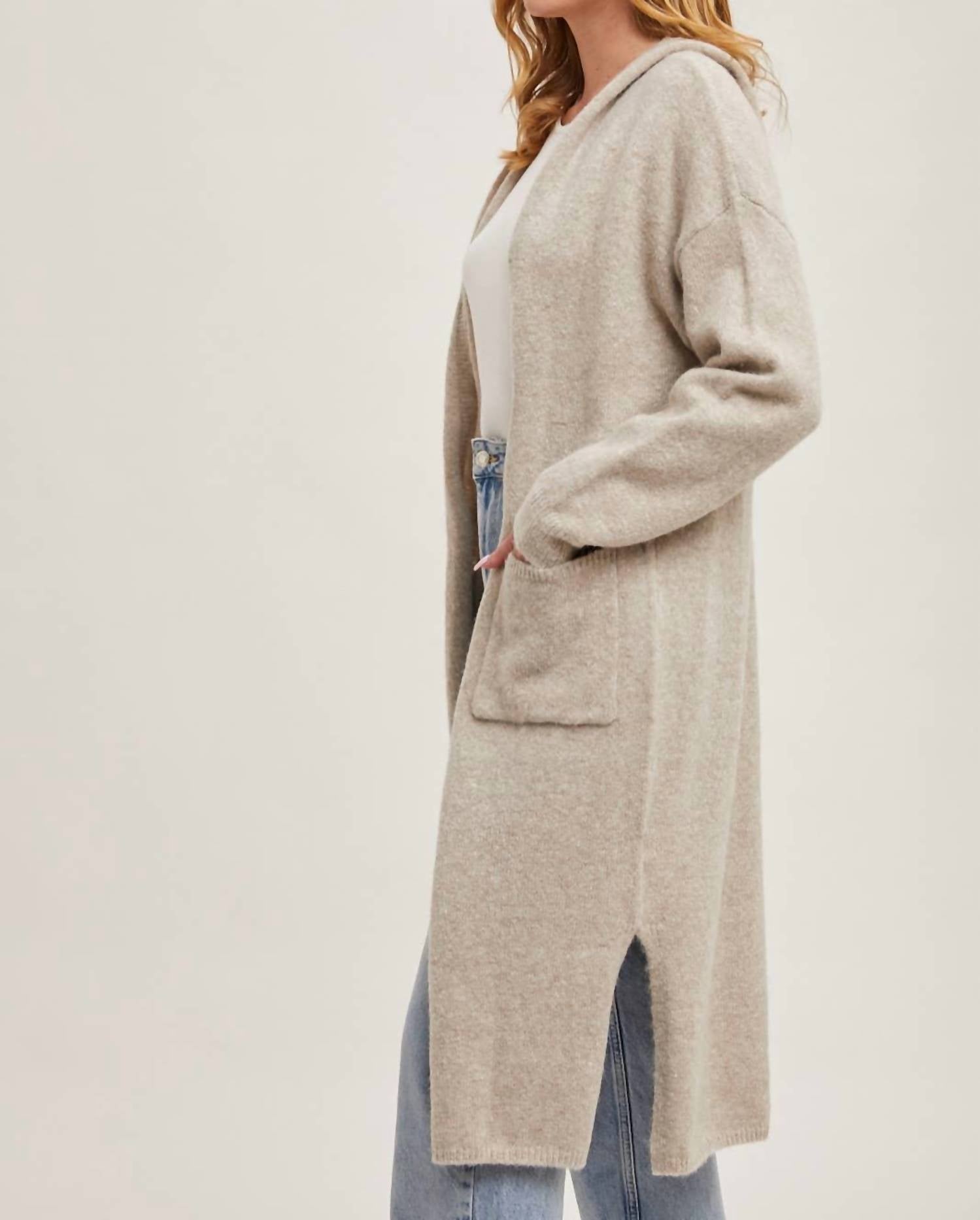 Bluivy - Longline Hoodie Drape Open Front Cardigan