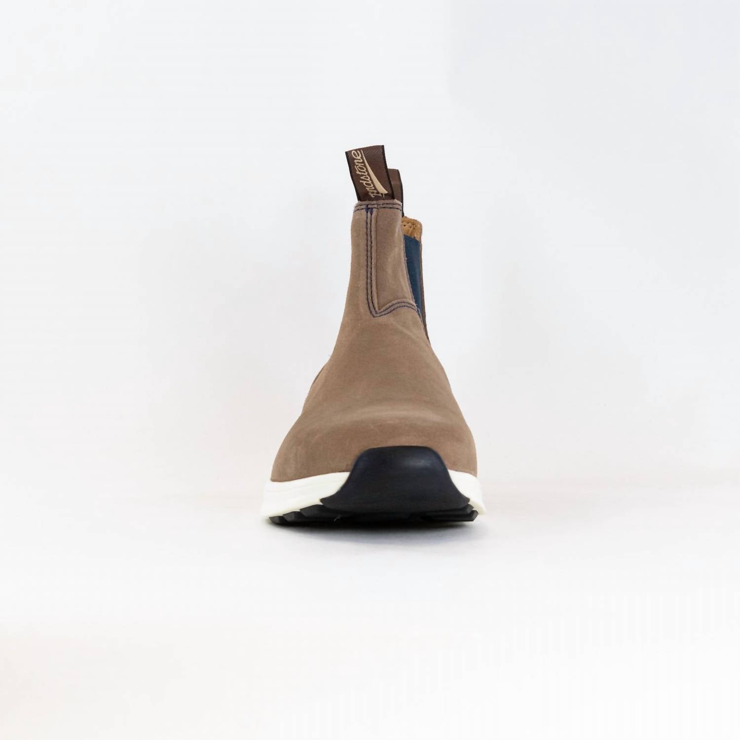 Introducing the Men's Blundstone 2146 Boot, a minimalist favorite for your spring wardrobe, perfect for a dinner party with its stylish sand and navy color combination. Crafted from premium, water-resistant suede with leather and synthetic lining, these boots ensure all-day comfort through an antibacterial PU Comfort Air footbed and a rubber outsole with XRD® Technology heel insert. Designed in a flat heel style with a medium shoe width, these boots offer a round toe shape for sleek styling. For care, a soft bristled brush or damp cloth should be used to remove dirt, followed by the application of leather polish, spray, or cream to maintain quality.