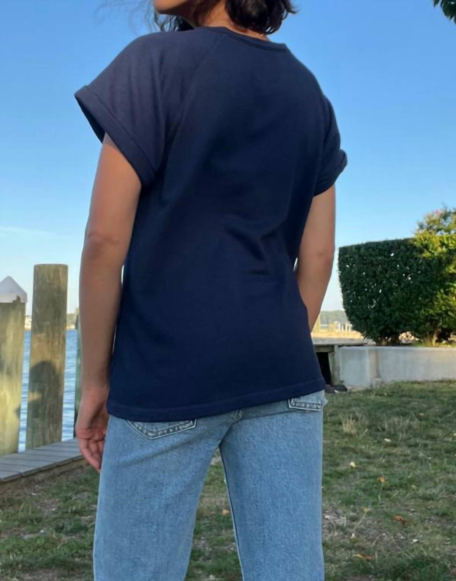 Bobi - Boatneck Roll Sleeve Raglan Top