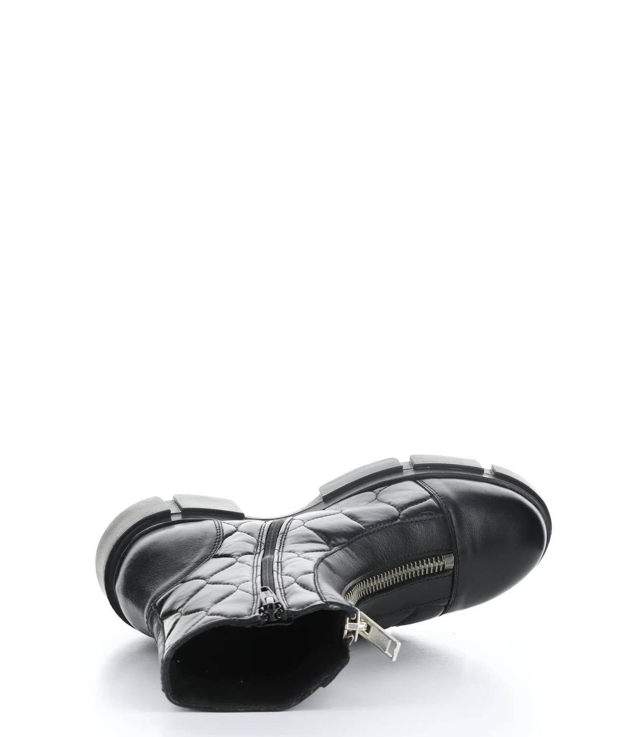Say hello to the perfect, most versatile boot. The ankle height makes this style easily transition from day to night. Wear them with your favorite skinny jeans and tee for a more laid back look, or pair them with your favorite mini dress and jacket for a night out on the town. Elevate your edgy style with the Women's Lane Boots by Bos. & Co., crafted for the bold and adventurous. These black leather ankle boots feature a 6-inch shaft and a 1.5-inch heel, perfect for a low heel height that remains comfortable. Designed with a front zipper for easy wear, these boots are ideal for a concert or New Year's Eve outing. Embrace the fall season with waterproof quilting and a cushioned insole for maximum comfort.