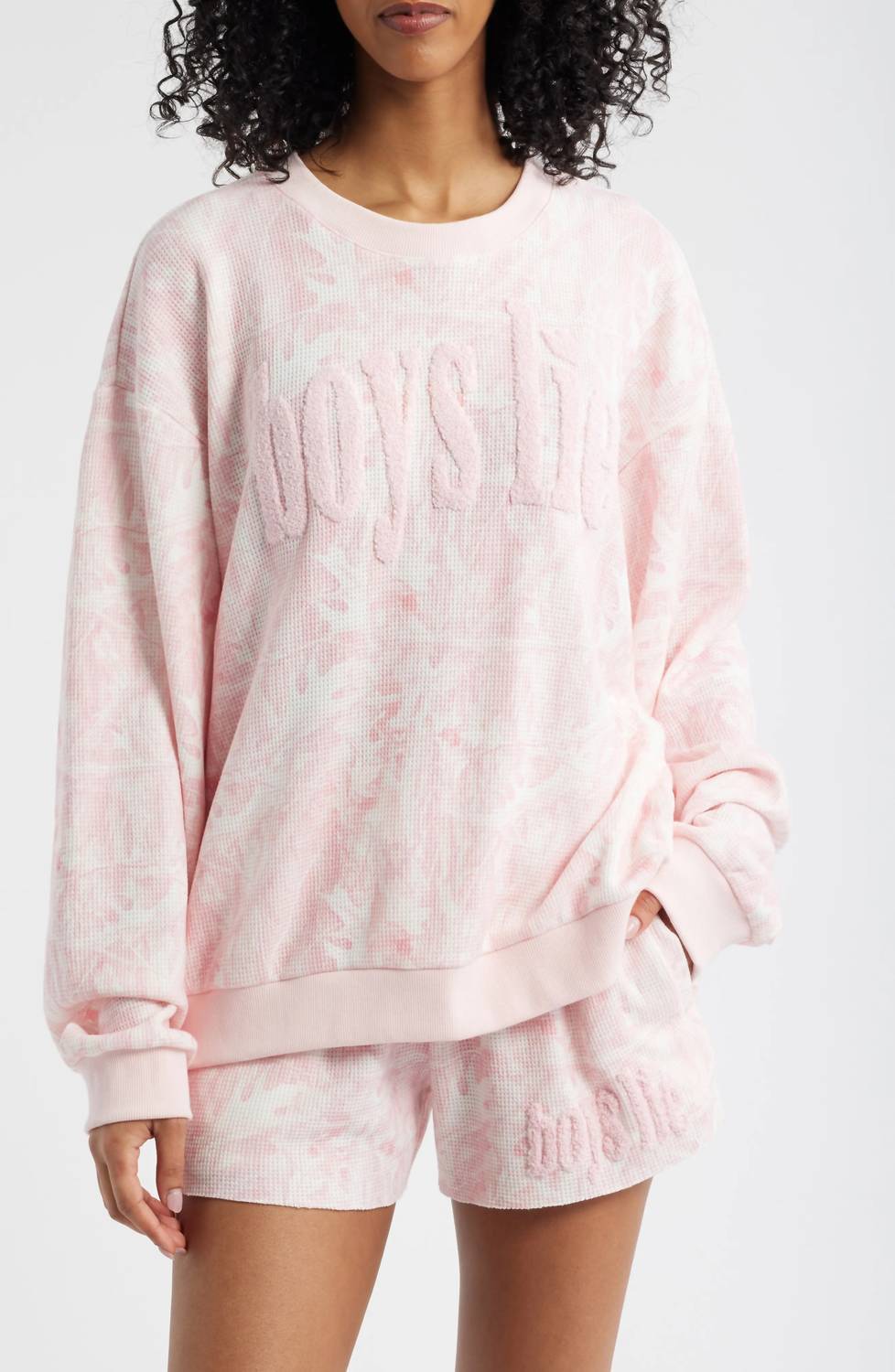 The ultimate go-to sweater, expertly crafted to provide the perfect combination of warmth and style. Its classic design and soft fabric make it a must-have addition to your wardrobe. Elevate your fall wardrobe with the Women's Manhunt Kara Crewneck Sweater from Boys Lie, where cozy meets cool. This patterned pink camo sweater features long sleeves and a classic crewneck, with a subtle pale pink "Boys Lie" embroidery for a chic statement. Crafted from 68% Polyester, 29% Rayon, and 3% Spandex in a soft, textured fabric that offers both comfort and style. Closure: Pull-on. Care: Machine wash and tumble dry for easy maintenance.