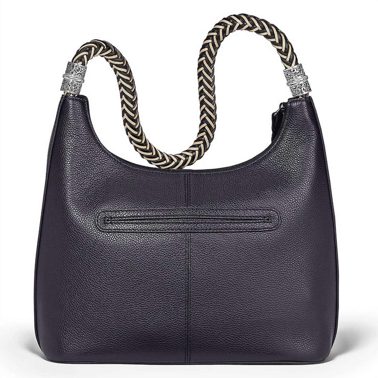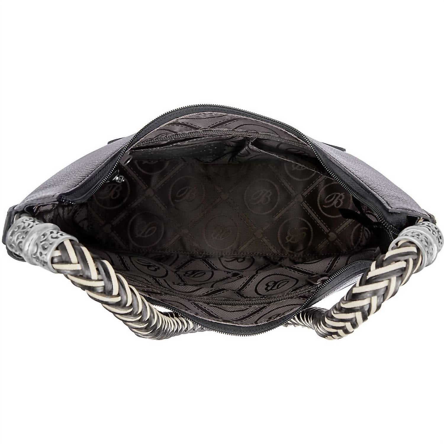 You can never have too many handbags and this hobo bag is no exception. The Bellaire Hobo Bag by Brighton is an elegant piece crafted from luxurious Italian leather in timeless black. With a thoughtfully designed ziptop closure, it offers ample storage through its four interior pockets and three exterior pockets, alongside a key holder for added convenience. Measuring 11 1/2" in width, 8 1/2" in height, 4 1/8" in depth, and featuring a 12 1/2" strap, it perfectly blends style and function. The woven Jacquard interior lining enhances its sophisticated appeal, making it a must-have accessory.