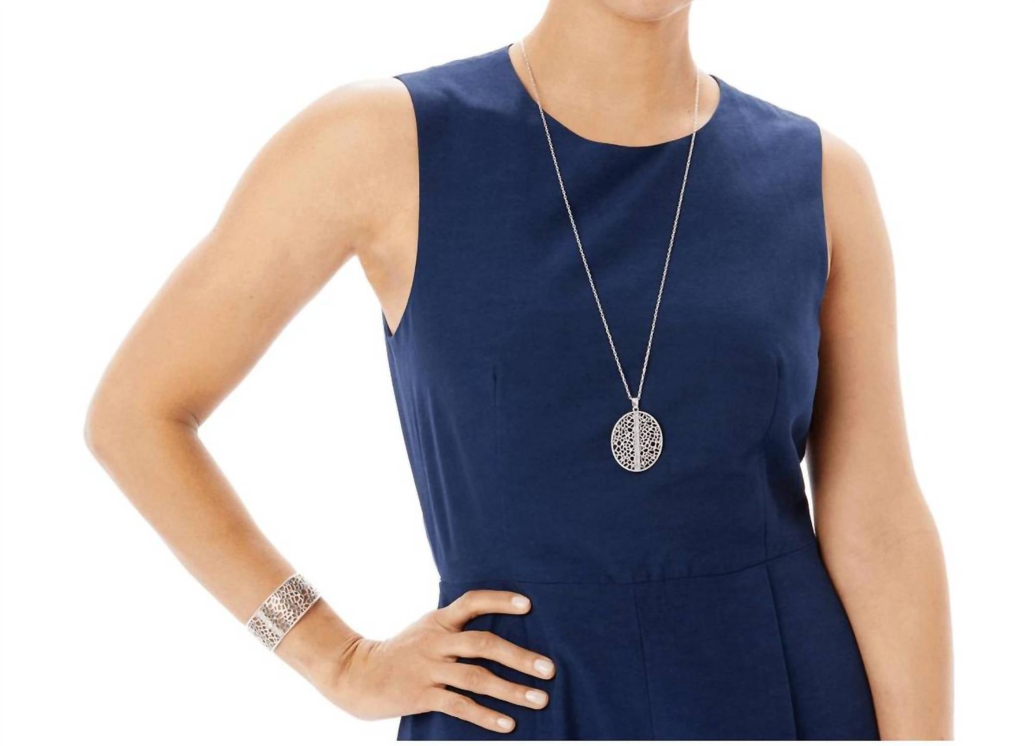 Layer this necklace or wear it on its own. Either way it's a win-win. Elevate your elegance with the Fiji Sparkle Convertible Necklace by Brighton, a stunning piece in silver, adorned with delicate Swarovski crystals. The exquisite lacy lines mimic underwater coral reefs, offering an understated and refined appeal. With an adjustable length from 16" to 37" and a pendant drop of 2", this necklace allows for versatile styling, whether worn long or short. Closure: Lobster Claw. Material: Swarovski Crystal, Silver Plated.