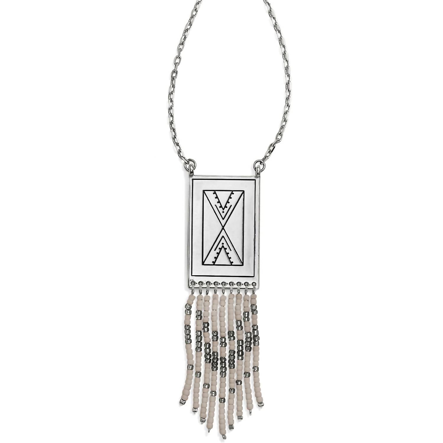 Layer this necklace or wear it on its own. Either way it's a win-win. The Women's Africa Stories Beaded Necklace by Brighton adds a touch of Boho flair to your wardrobe with its beaded fringe design. Inspired by African travels, this fashion necklace is crafted from durable stainless steel and features a silver hue that complements any outfit. Origin: Information not provided. Elevate your style with this versatile accessory.