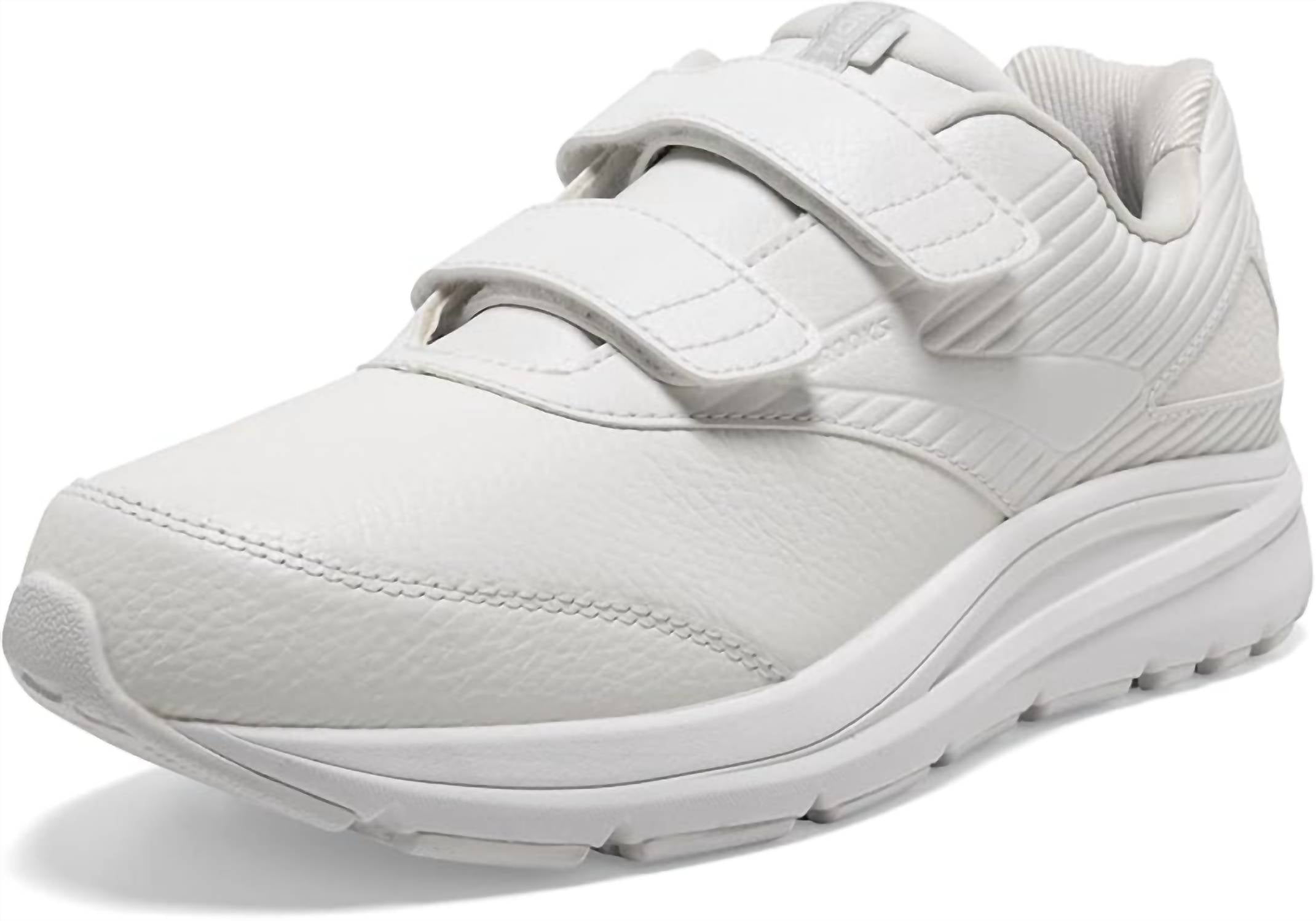 Introducing the Men's Addiction Walker V-strap 2 Shoes by Brooks, perfect for those seeking comfort without the hassle of laces. Designed with premium leather and a supportive structure, these shoes provide maximum support and responsive cushioning, ideal for walking, everyday runs, and travel. Available in classic white, the V-strap closure ensures easy on/off convenience. These athletic shoes align with a minimalist trend, making them a versatile choice for summer and Thanksgiving occasions.