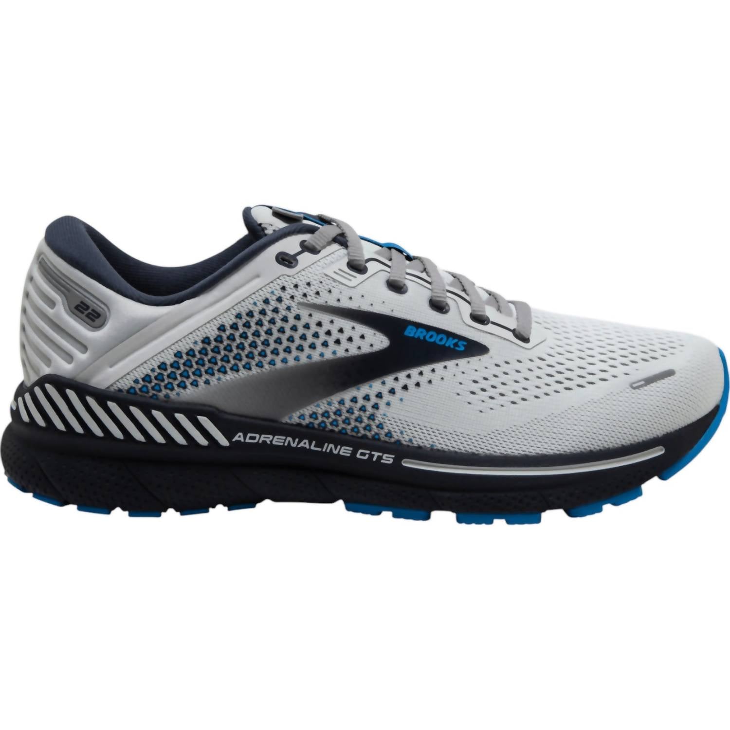 Experience a perfect blend of support and style with the Men's Adrenaline GTS 22 Shoes by BROOKS. Crafted for those with an active lifestyle, these athletic shoes come in a sleek Alloy/Grey/Black color scheme. Designed with a robust rubber material, they feature a medium width and a comfortable round toe shape. Made for adults, these shoes sport a low heel with a height range of 1 1/4"-2".