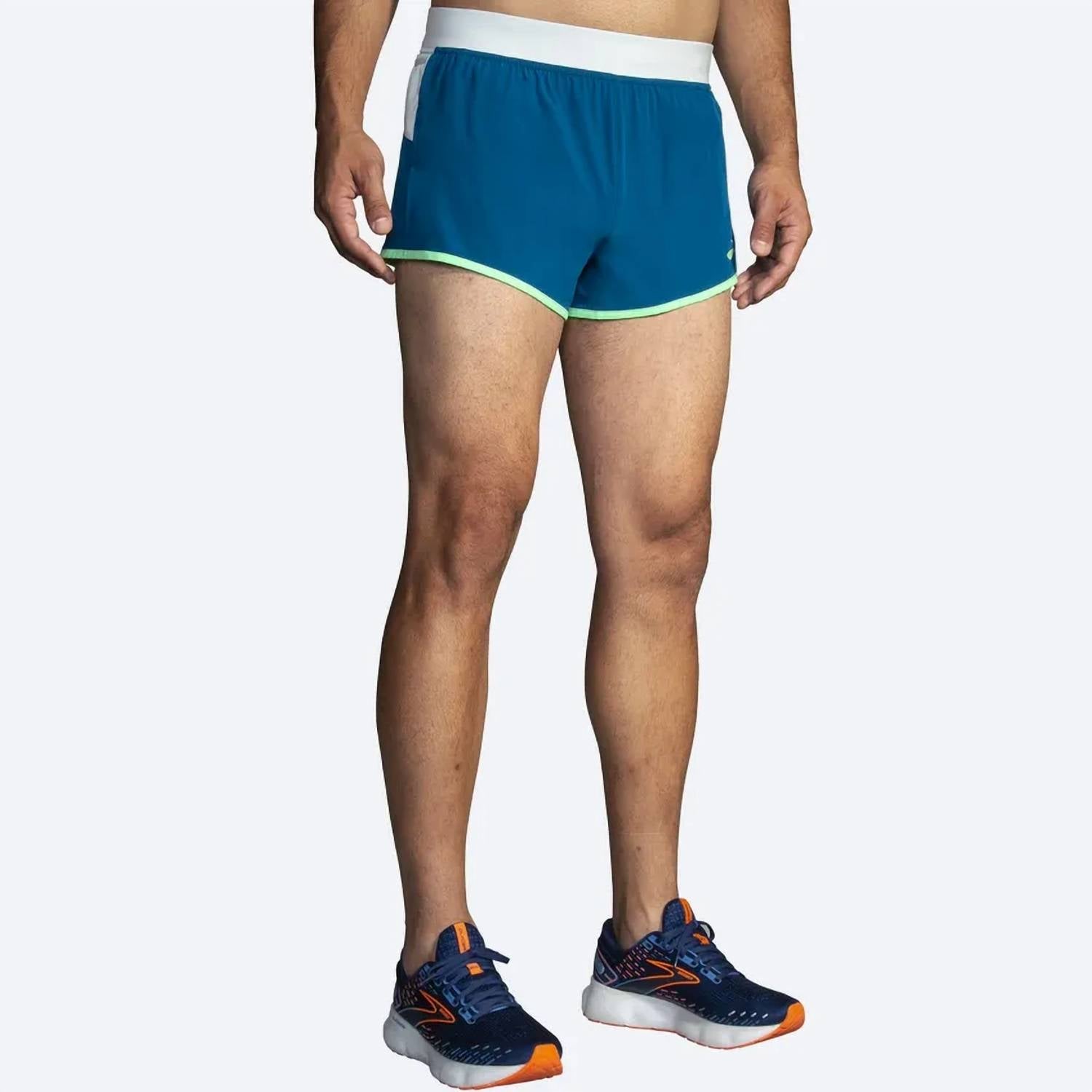 Experience the ultimate in athletic performance with the Sherpa 3” Split Short by BROOKS, crafted from a sustainable blend of 89% recycled polyester and 11% spandex. These shorts are designed for men and feature a solid pattern in the striking colors of Dark Ocean, Grey Skies, and Neo Green. The pull-on closure makes them easy to wear, while the added convenience of pockets ensures functionality during workouts. Care is simple, machine wash and tumble dry for effortless maintenance.