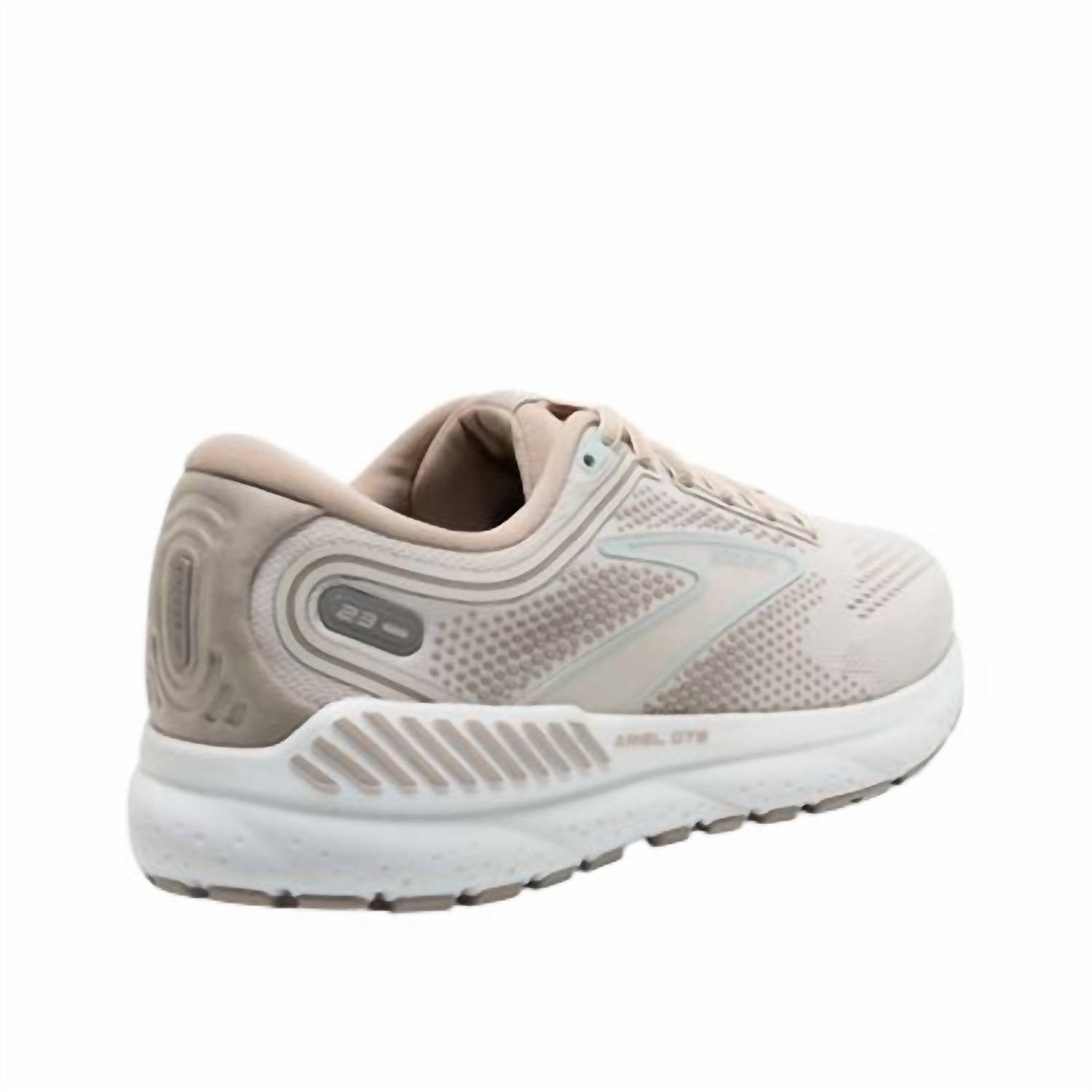 The Women's Ariel GTS 23 Shoes by BROOKS provide unmatched comfort and stability. Crafted with recycled materials, it features a wide base to comfortably accommodate orthotics. Perfect for adult runners, the shoes also highlight sustainability.