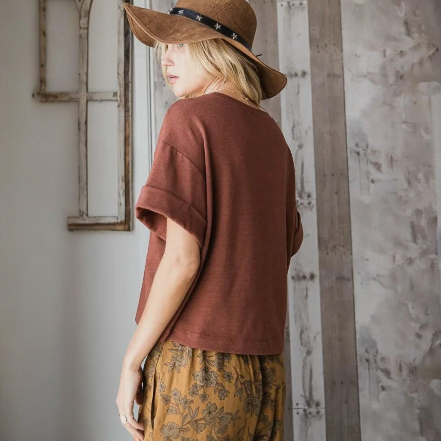 Look no further, you just found your perfect tee! Introducing the Be Happy Graphic Tee by BUCKETLIST, a blend of understated elegance and casual charm. This brown/taupe short sleeve tee features a classic crewneck and artfully rolled sleeves, crafted from a soft blend of 49% polyester, 40% cotton, 8% rayon, and 3% spandex. Designed with a pull-on closure and a relaxed, true-to-size fit, it showcases sophisticated typography for a versatile look. Perfect for summer streetwear and vacation occasions, this women's top pairs effortlessly with any wardrobe.