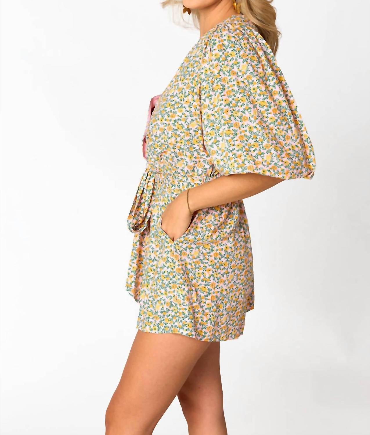 The perfect outfit choice when you you need something quick to throw on and still want to look efforlessly cool. Discover the Julie Open Back Romper by Buddylove, an ideal choice for your spring wardrobe in a Magnolia floral print. This charming romper features relaxed puff sleeves with elastic at the elbow and practical pockets, making it as functional as it is fashionable. Crafted from cotton, it boasts a comfortable wide-leg silhouette with a high-rise elastic waist, accented with a tie for added flair. Closure is by button, ensuring ease of wear, and it's designed for a true-to-size fit.