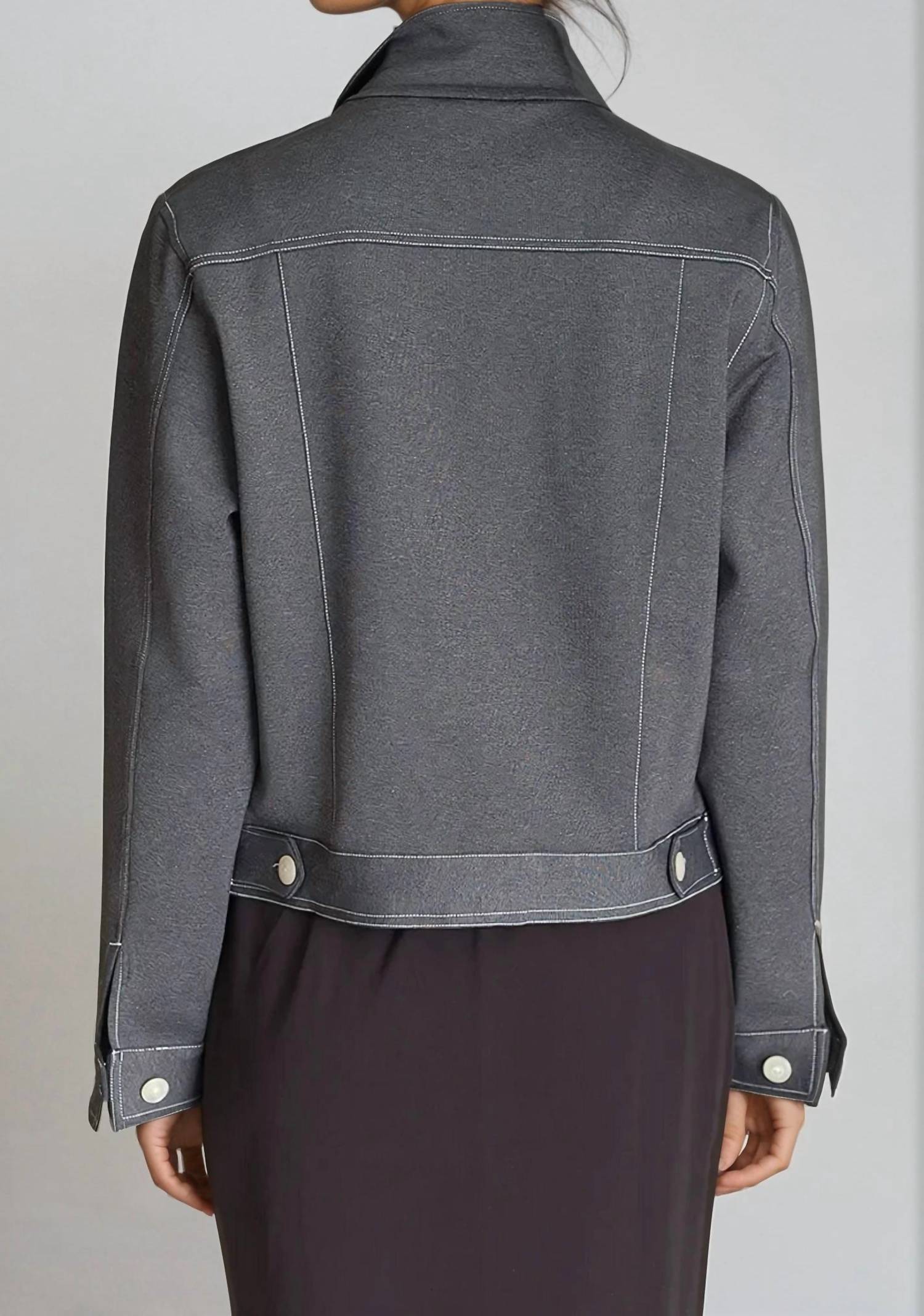 Classic, cool and works with almost any outfit choice. Introducing the Neo-tech Jacket by Buki, crafted for the modern traveler in a sleek charcoal grey. This long sleeve jacket is made from a unique Buki Neo-Tech denim that offers unparalleled four-way stretch and recovery, ensuring comfort and wrinkle resistance for all-day wear. It features a stylish textured pattern with a practical button closure and two inside pockets for your essentials. Care: Machine wash.