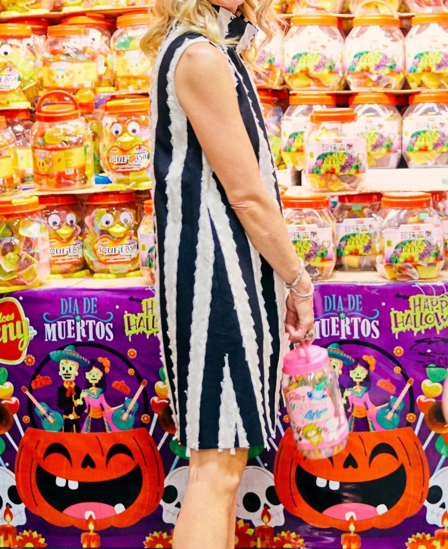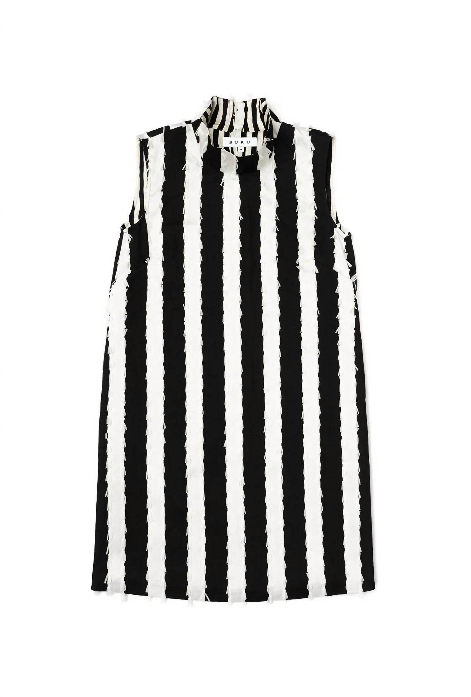 The perfect mini dress for those warmer months. Introducing the Joker Mini Dress by Buru, a retro glam piece perfect for making a bold statement. This sleeveless shift dress showcases a striking black and white stripe pattern, seamlessly blending sophistication with chic style thanks to its mockneck design. Crafted as a mini silhouette, it features a convenient zip closure and celebrates summer with a boho chic vibe. Ideal for special occasions like birthdays or New Year's Eve, this dress is a modern classic from a brand known for its distinct flair.
