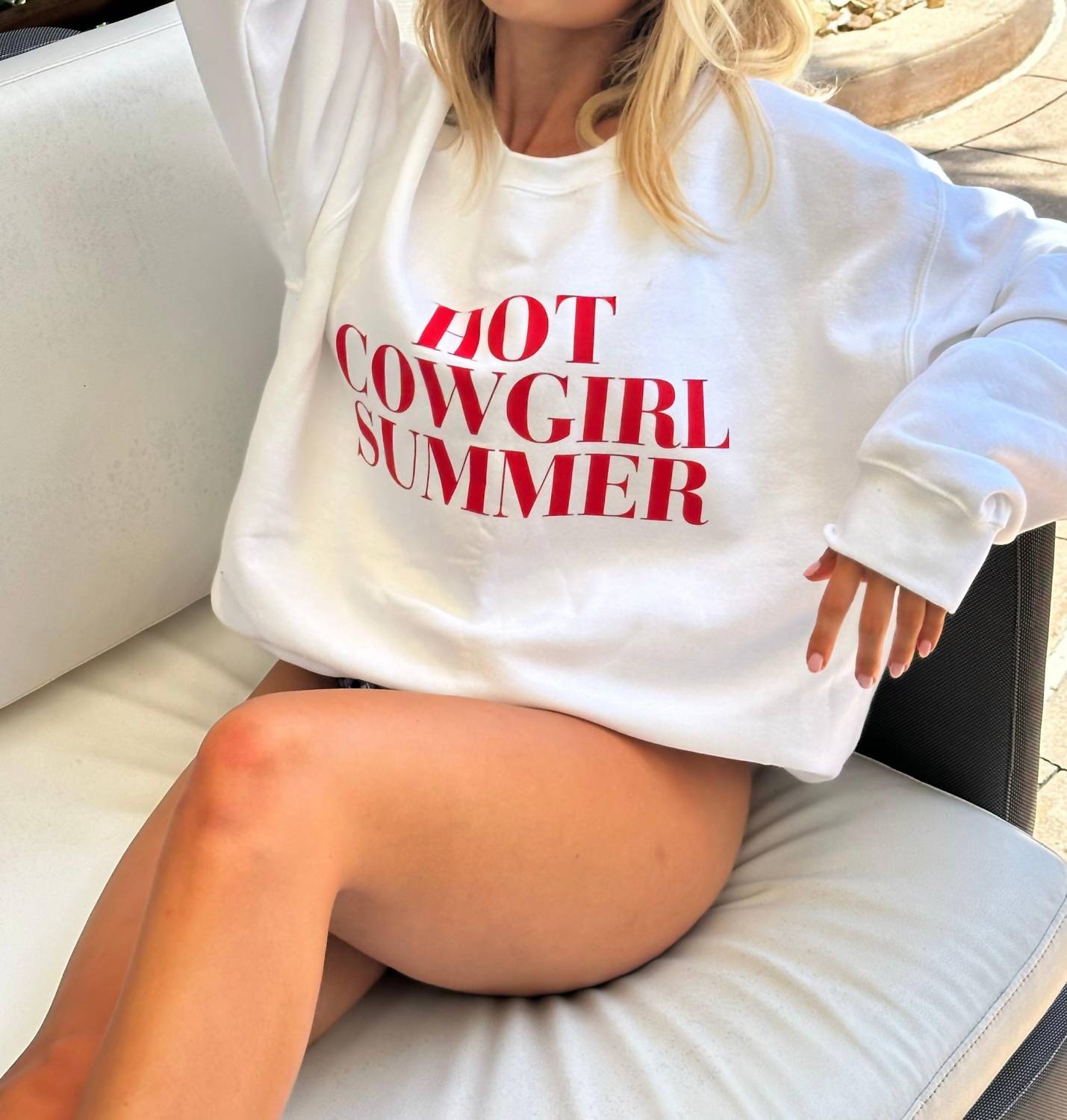Cooler temps call for layering and we love this adorable sweatshirt for all the obvious reasons. Offering a relaxed oversized boyfriend fit in crisp white. Long sleeve graphic crewneck exudes effortless Western charm, perfect for vacation getaways and winter streetwear. With a fashionable drop shoulder design and easy pull-on closure, seamlessly pairs with denim for a laid-back yet trendy ensemble. Crafted with care, this sweatshirt is machine washable for easy maintenance.