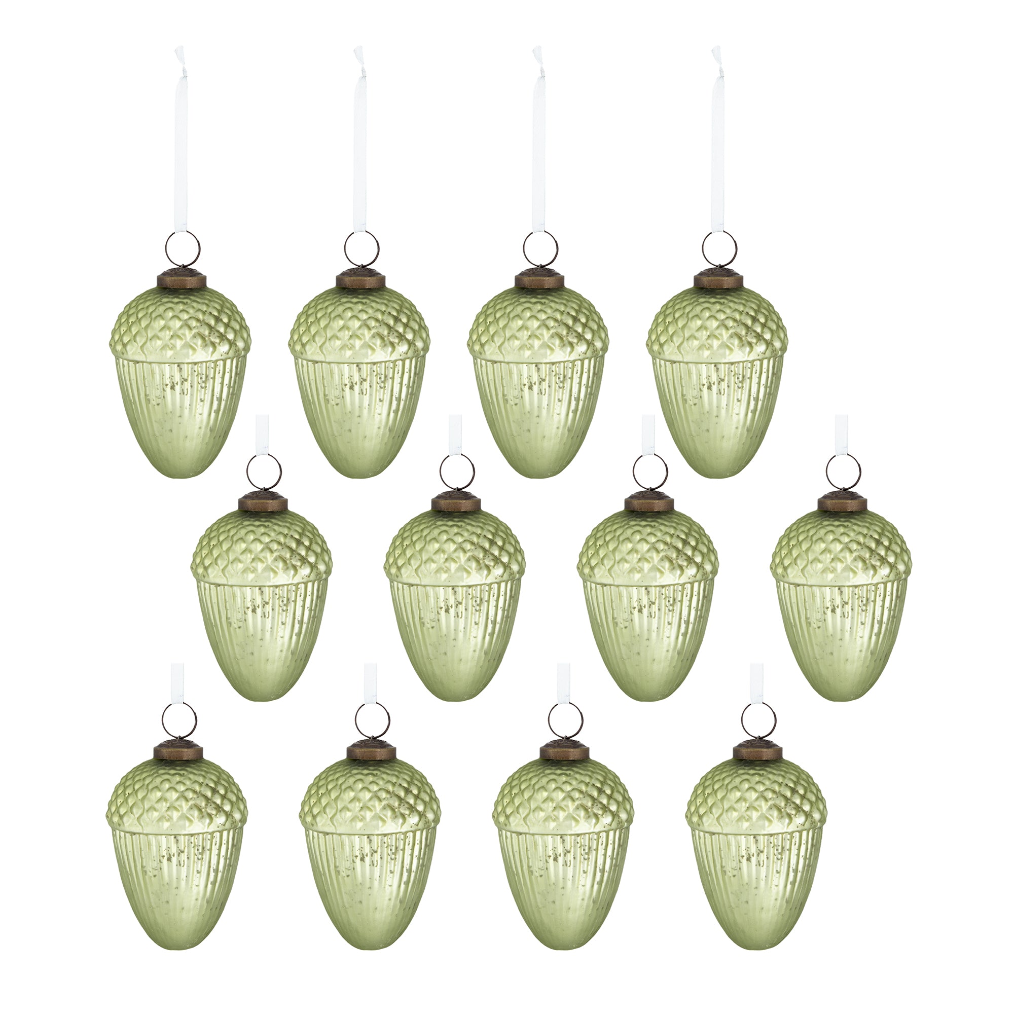 Set of 12-Green Glass Ornament Set – 4.3-Inch Handcrafted Christmas Tree Decorations