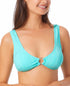 California Waves dresses up a bralette bikini top with textured jacquard fabric and playful ring hardware for a fresh take. | Removable cups| Fixed shoulder straps; self-ties at mid-back| Scoop neckline;ring hardware at front| Textured jacquard fabric| Lined|