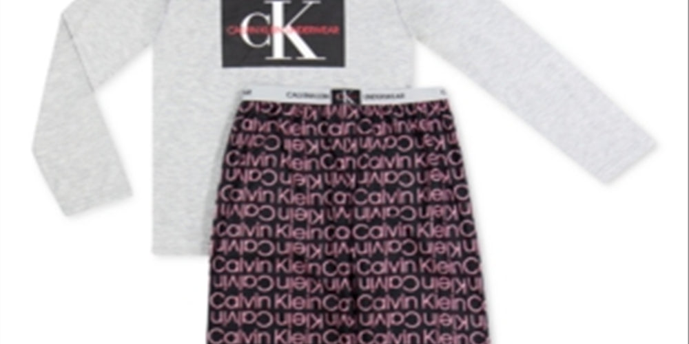 Calvin Klein Big Boy's 2 Pc Brushed Pajamas Set Gray Size LG