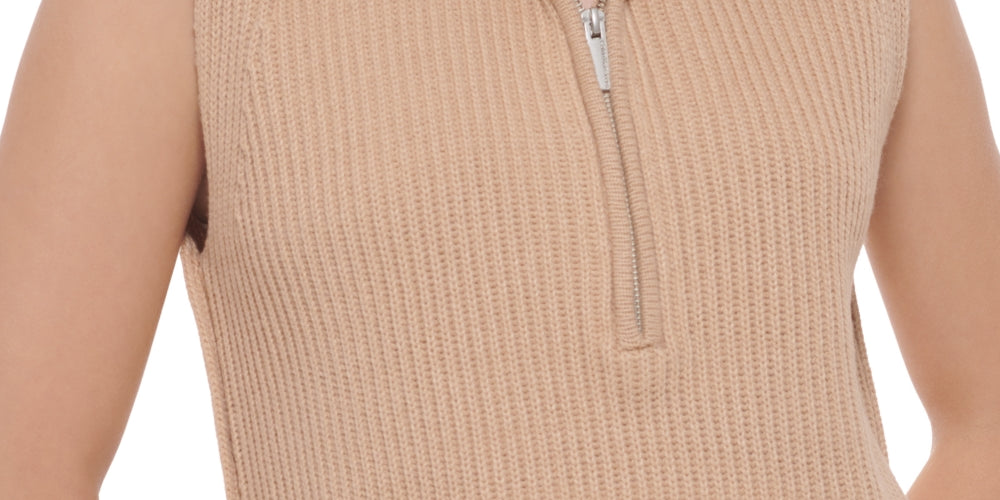 Calvin Klein Jeans reinvents a classic sleeveless knit top by adding a half-zip hood and side slits.| Relaxed fit| Attached hood; half-zip closure| Slits at sides | Acrylic| Machine washable