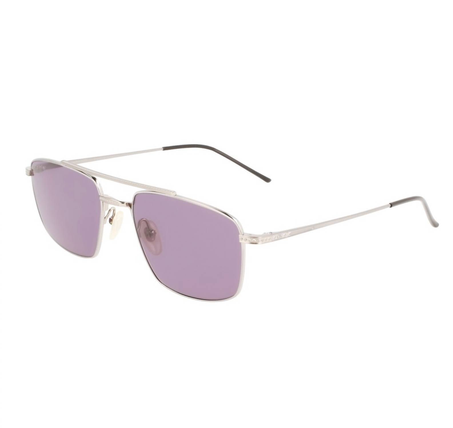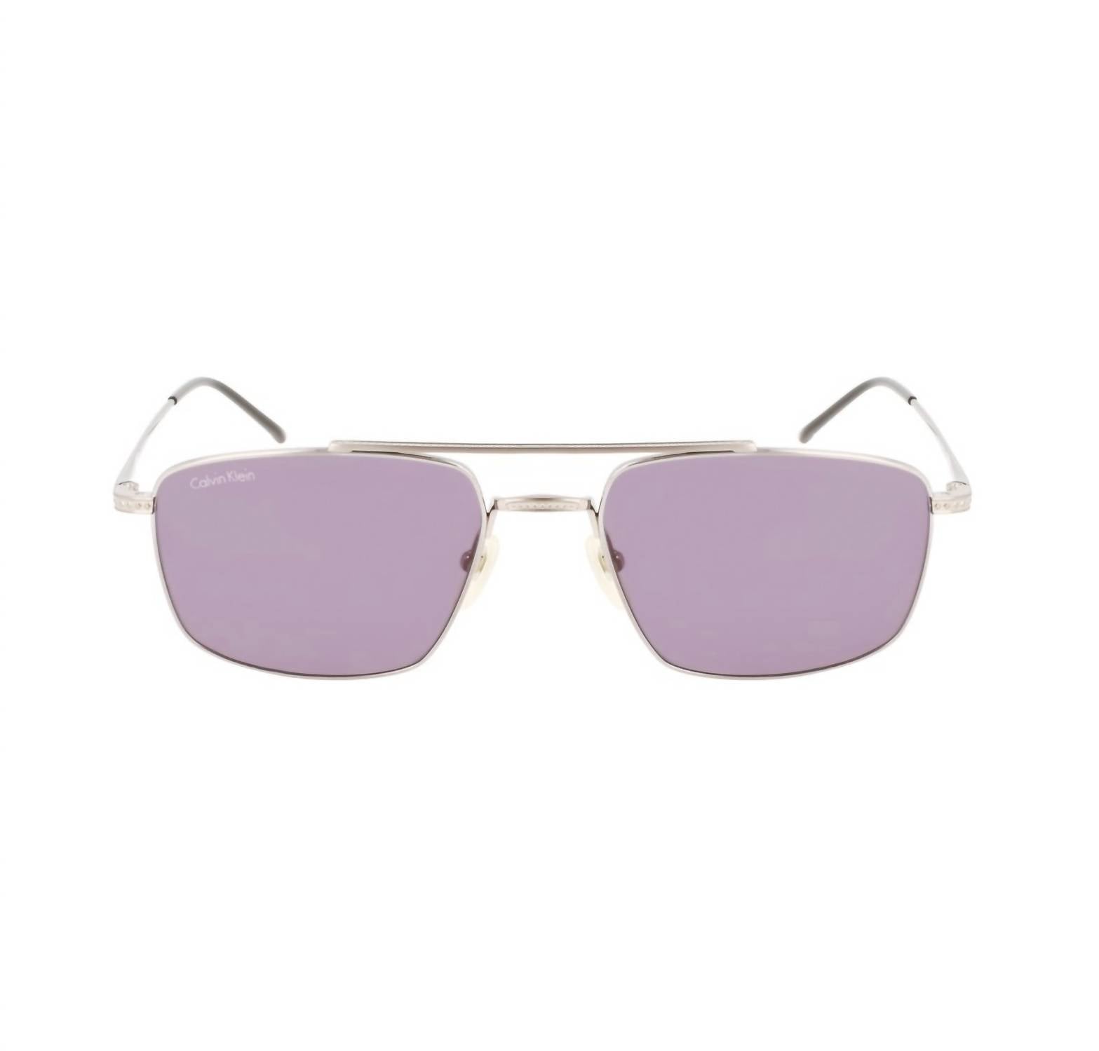 Discover the Men's CK22111TS Sunglasses by CALVIN KLEIN, a sophisticated choice for discerning eyewear enthusiasts. Frame Material: Durable Japanese titanium that is both weightless and high-quality. Lens Color: Solid grey. Frame Color: Silver. Size Specifications: Lens width 56mm, Bridge 19mm, Temple 145mm. These prescription-friendly frames feature a thin and lightweight structure with adjustable nose pads for a comfortable fit. Style: Rectangle.
