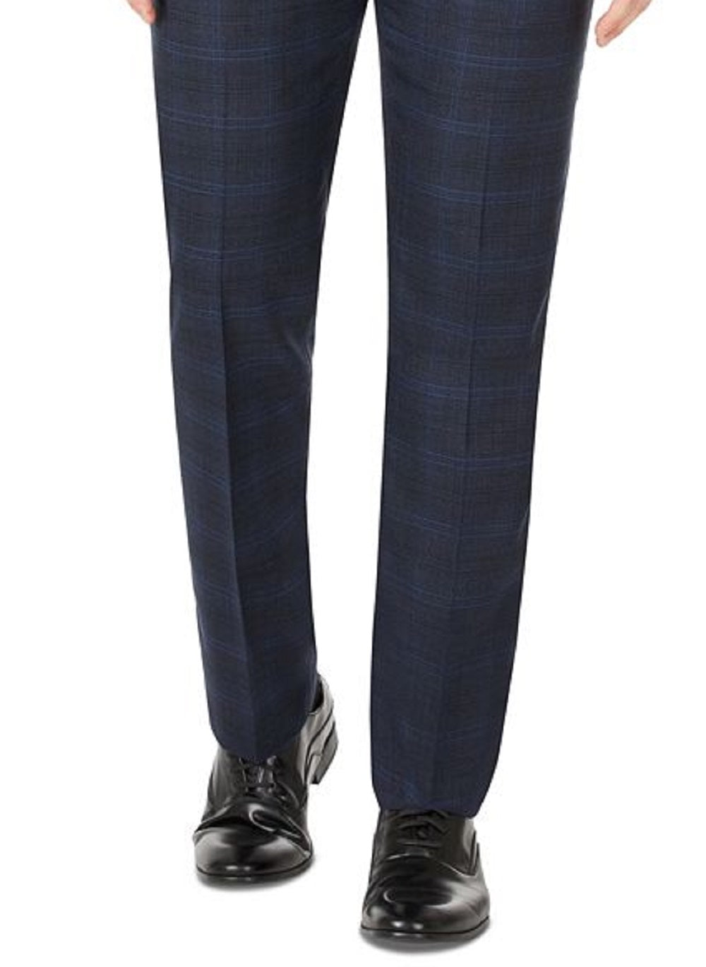 Add a touch of stylish texture and shine to your sophisticated wardrobe with the streamlined slim fit and the crisp plaid of these suit pants from Calvin Klein