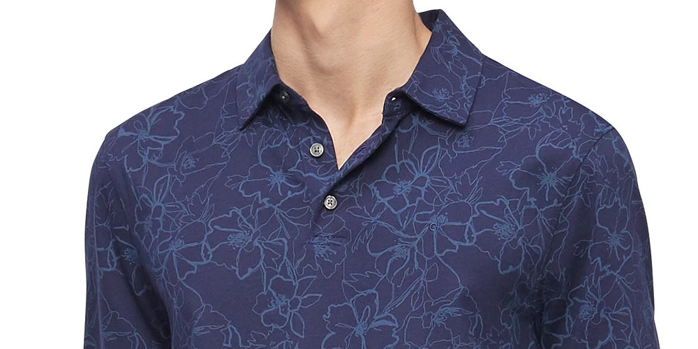 Calvin Klein Men's Short Sleeve All Over Floral Print Maritime Blue Combo Blue Size Large