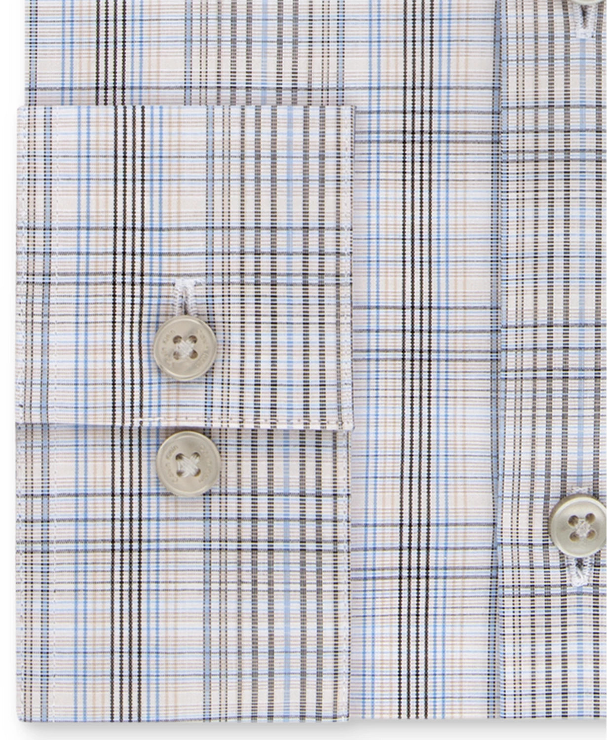 Calvin Klein Men's Slim-Fit Stretch Performance Plaid Dress Shirt Beige Size 34-35