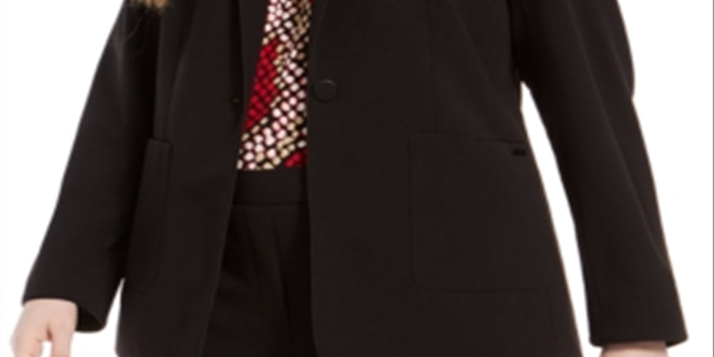 Tuxedo details like piped satin trim take this plus size blazer by Calvin Klein to the next level of stylish professionalism