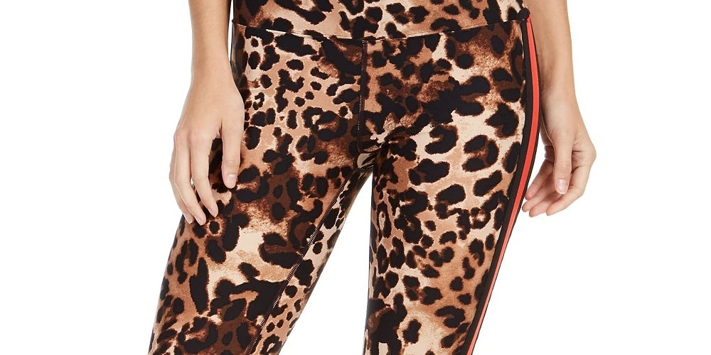 Calvin Klein Women's Animal Print Striped High Waist Leggings Brown Size Medium