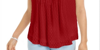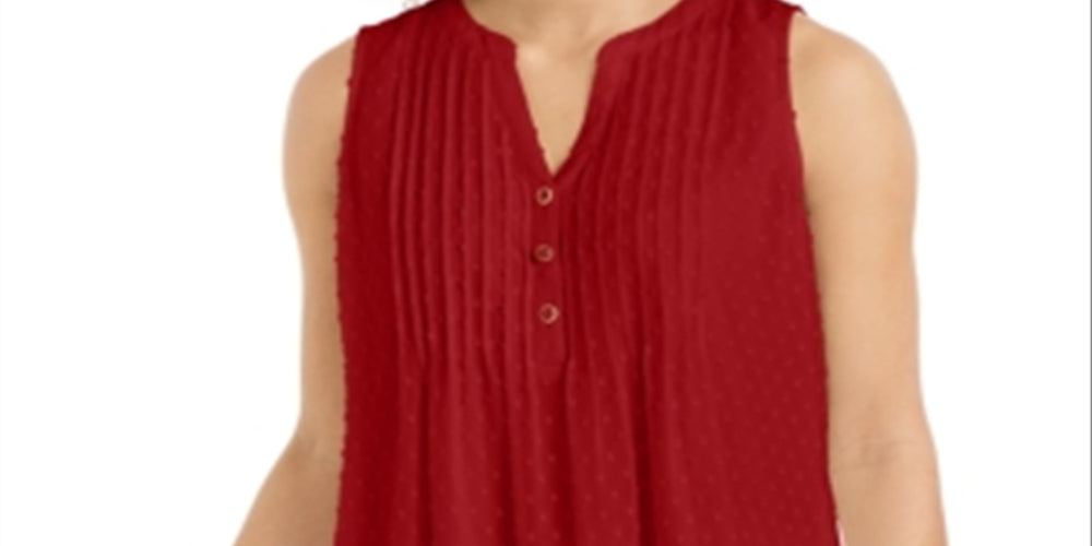 Calvin Klein Women's Barn Plus Texture Dot V Neck Blouse Red Size XX-Large