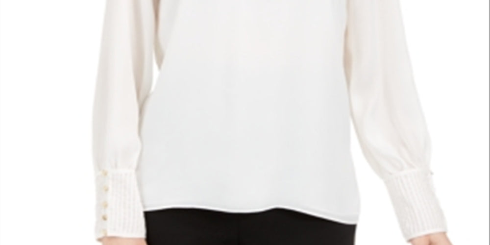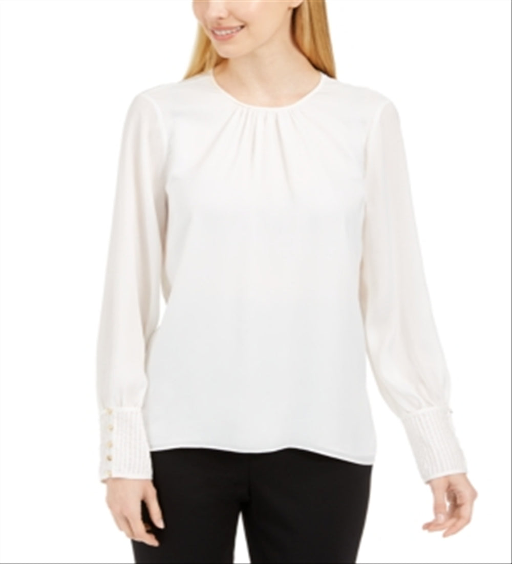 Calvin Klein Women's Button Cuff Top White Size Petite XS