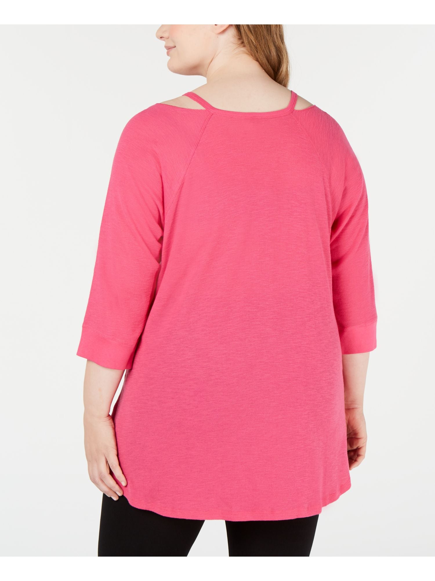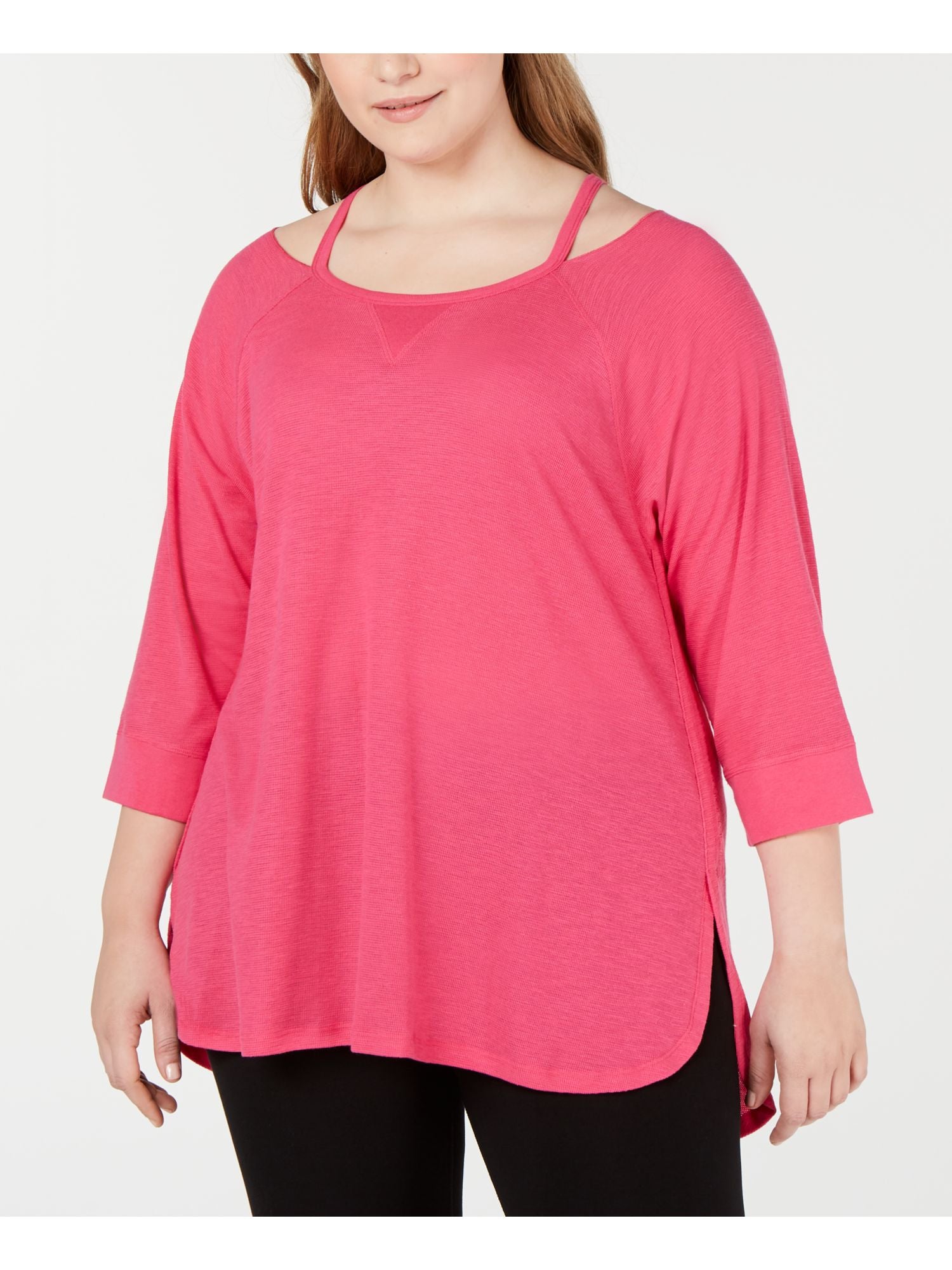 calvin klein|style; top|occasion; casual|size; 3x|material; cotton blend|color; pink|square neck