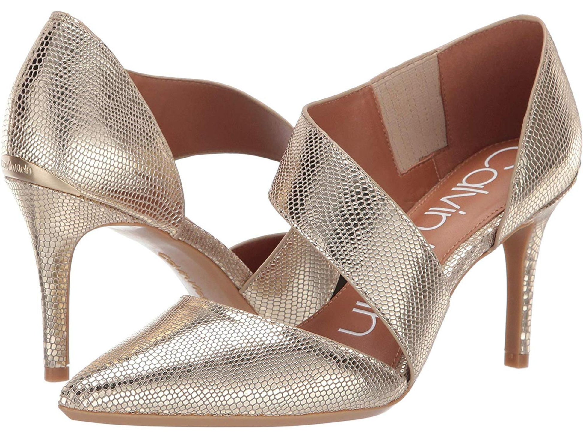 Calvin Klein Women's Gella Leather Pointed Toe Ankle Wrap Classic Pumps Yellow Size 10 M