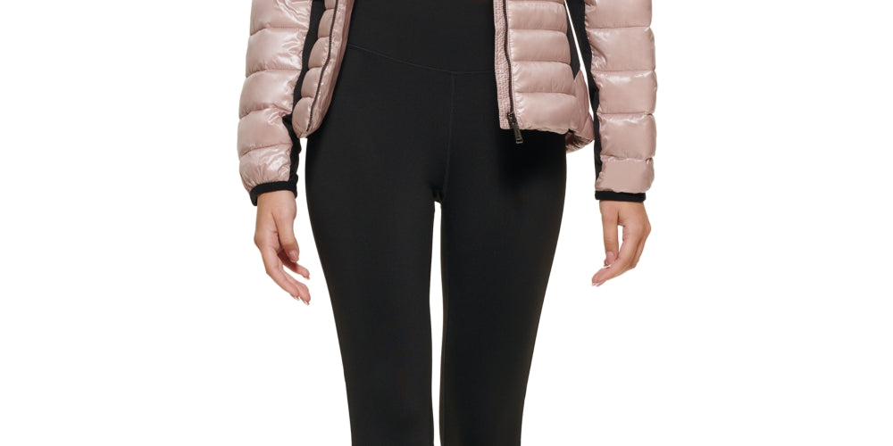 Brushed jersey panels bring flattering| sporty contrast to this hooded jacket from Calvin Klein