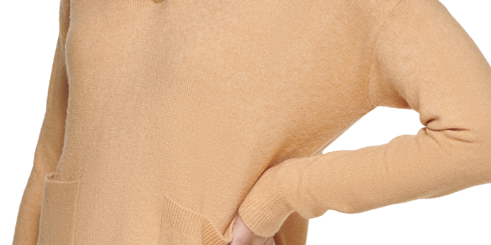 Calvin Klein Women's Knit Pocketed Stretch Logo Graphic Long Sleeve V Neck Hoodie Sweater Gold Size X-Large